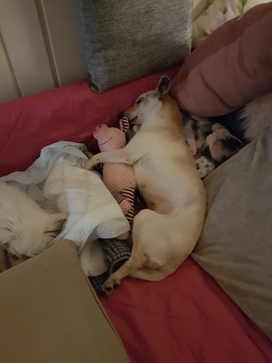 Auf ihrer Pflegestelle lebt sie mit anderen Hunden zusammen