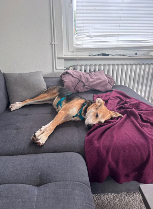 Seit August bin ich bei einer Pflegefamilie in Dithmarschen. Hier habe ich entdeckt, dass ich lange Spaziergänge liebe - völlig egal welches Wetter draußen tobt. Bei Wind strecke ich gerne den Kopf nach oben, schließe die Augen und genieße den Luftzug um die Ohren. Im Anschluss Kuschel ich am liebsten mit meiner Pflegemama und ihrer Tochter und lasse mir den Bauch kraulen.