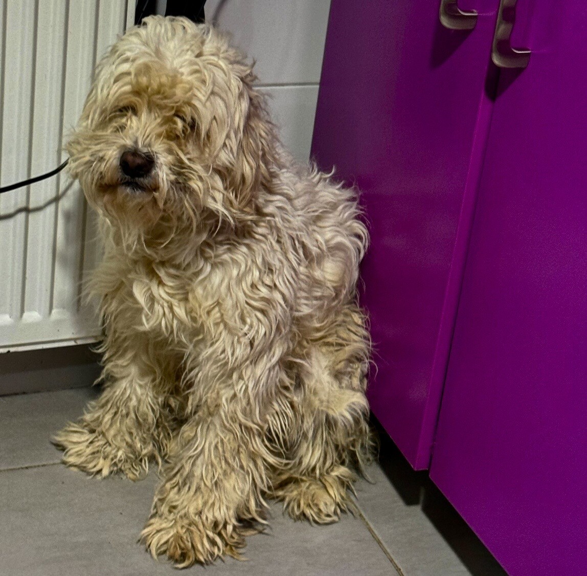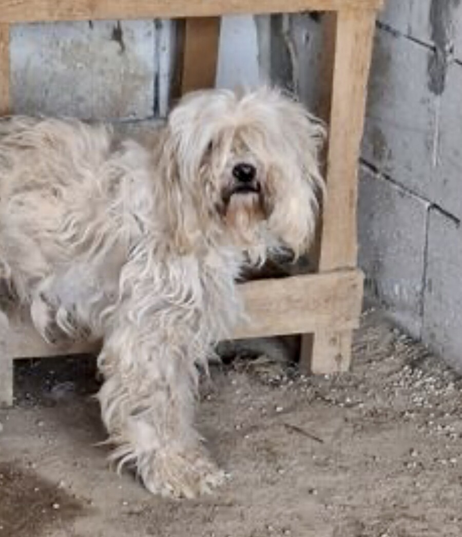 Chester, geboren 2022 und etwa 43 cm groß, kam im Januar 2024 aus dem Public Shelter Husi zu uns. Schon dort zeigte er, wie sehr ihn die Situation überforderte – seine Oberlippenmuskulatur war im Dauereinsatz, um Menschen auf Abstand zu halten.