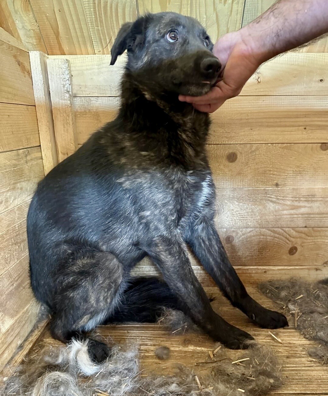 Nora, geboren 2022 und etwa 50 cm groß, hat in ihrem jungen Leben schon viel erlebt. Wir haben sie aus der Tötung Targu Jiu gerettet – und auch wenn sie heute nicht panisch ist, zeigt ihre sanfte Zurückhaltung, dass sie einiges hinter sich lassen musste.