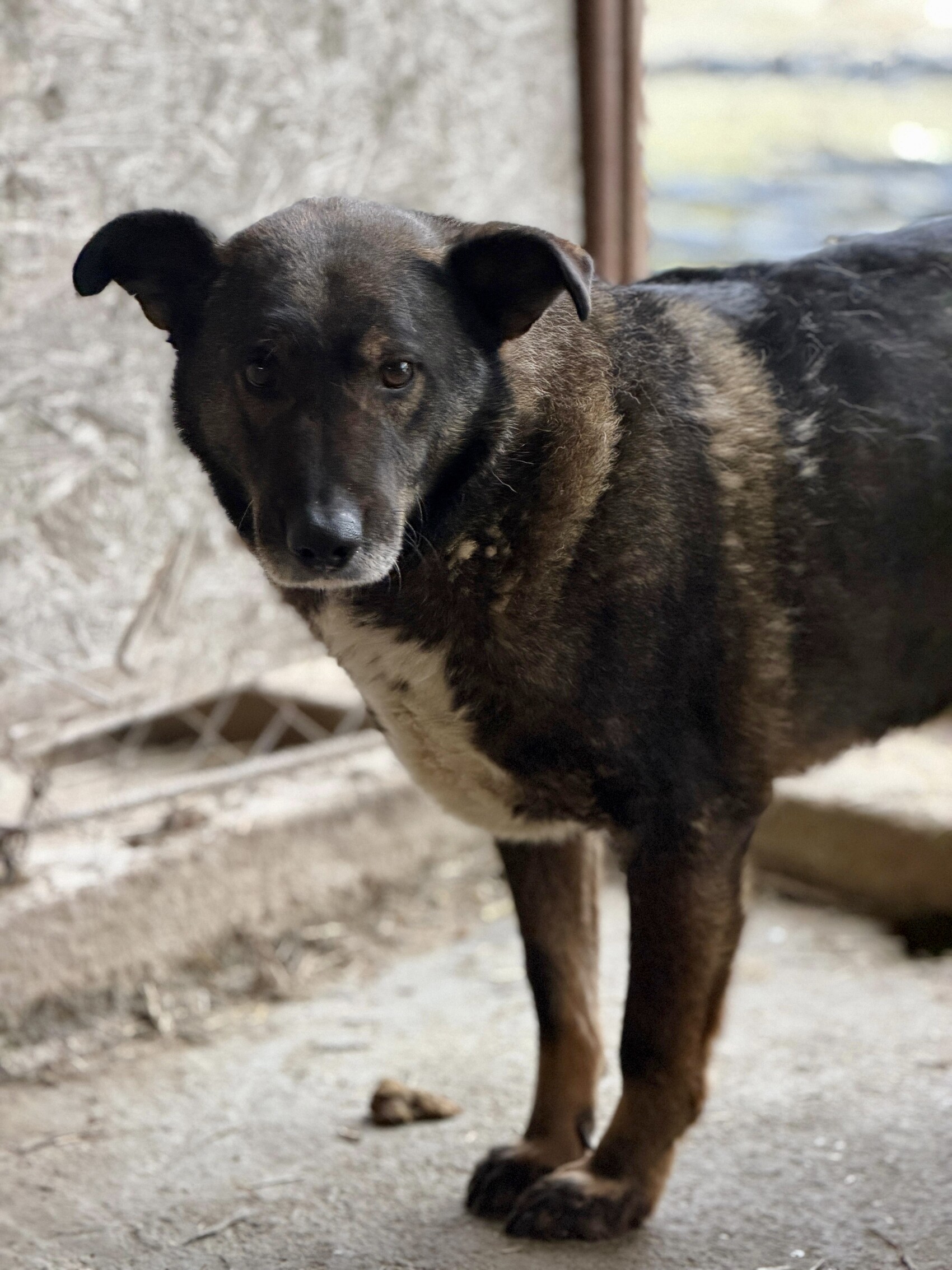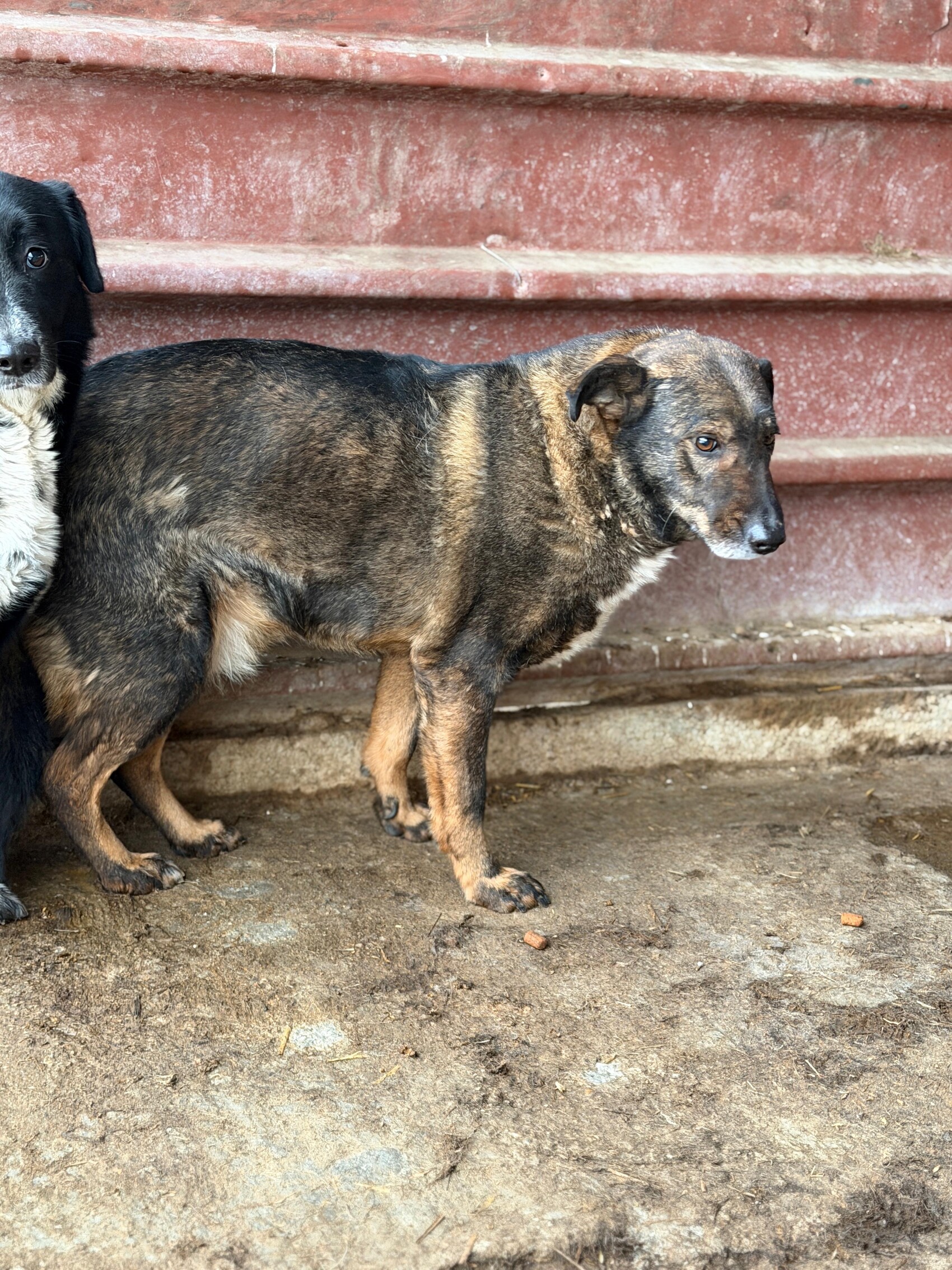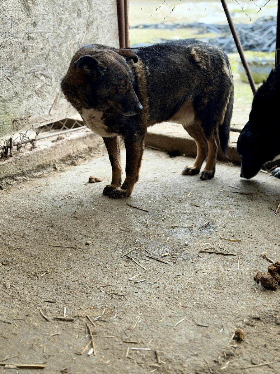 James ist einer dieser Hunde, die man kaum kennt, obwohl sie schon so lange da sind. Wir haben ihn buchstäblich noch nie außerhalb seiner Hütte gesehen. Er bleibt drinnen, leise, vorsichtig, zurückhaltend – und doch ist er richtig hübsch und gar nicht so groß. Ein Hund, der sich versteckt, obwohl er so viel zu geben hätte.