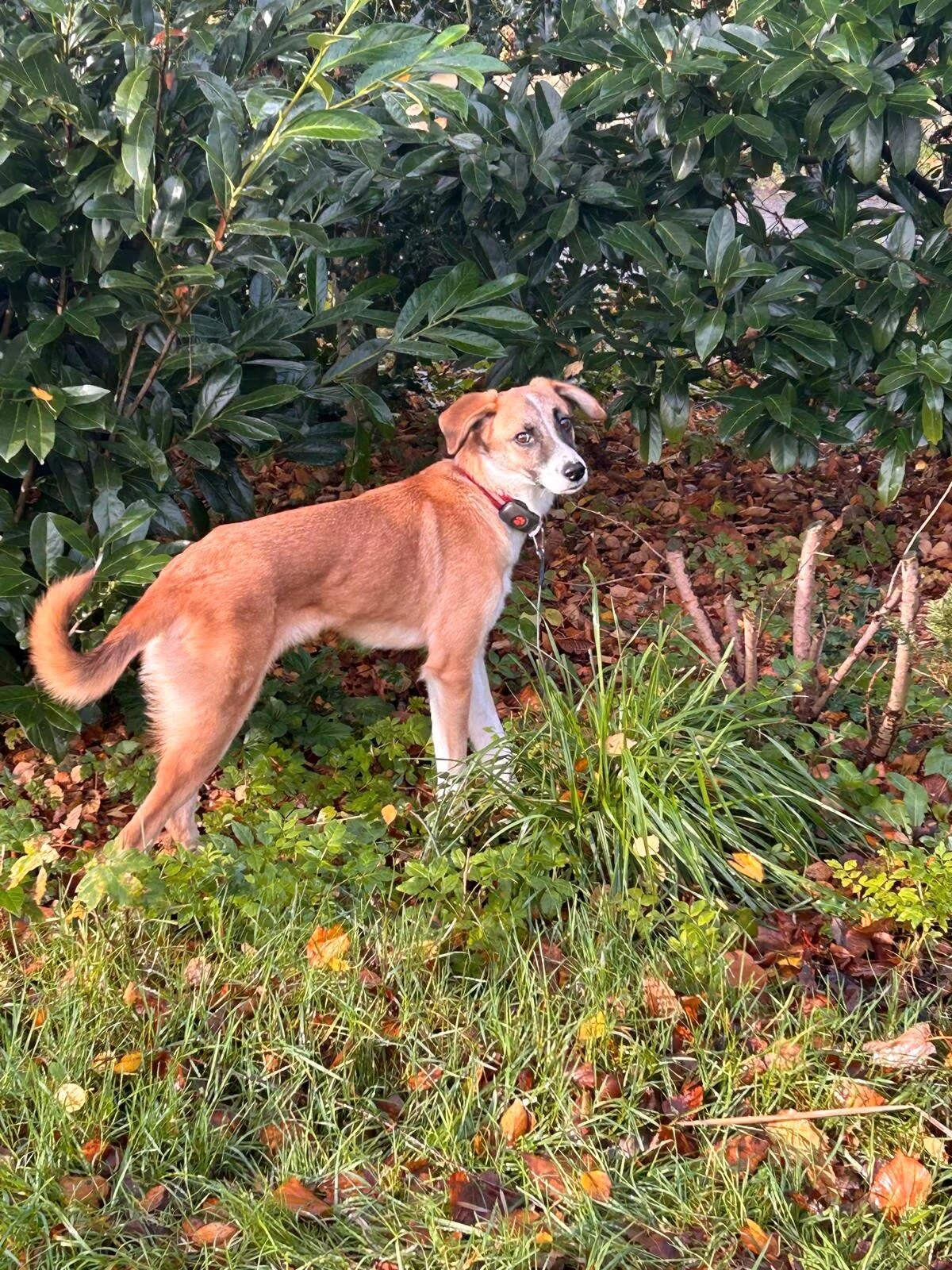 Mika lebt derzeit ländlich in einer gemischten Hundegruppe. Natürlich bringt sie noch eine ordentliche Portion jugendlichen Übermuts mit – fröhlich, verspielt und manchmal ein bisschen zu schwungvoll unterwegs. Die Hündin der Pflegestelle Thea zeigt ihr dann freundlich, aber bestimmt, wie höfliche Annäherung unter Hunden funktioniert – und Mika nimmt diese Korrekturen sofort respektvoll an.
