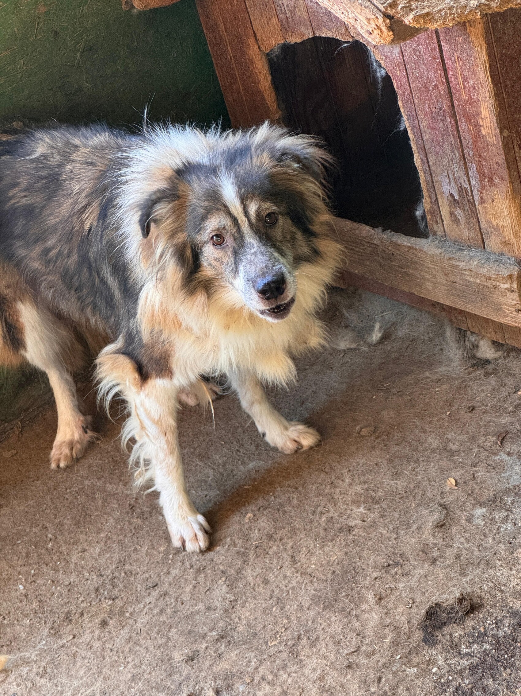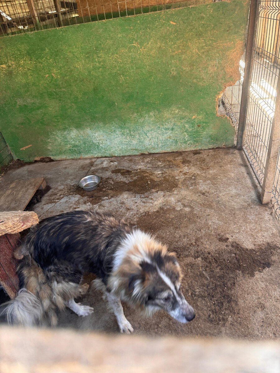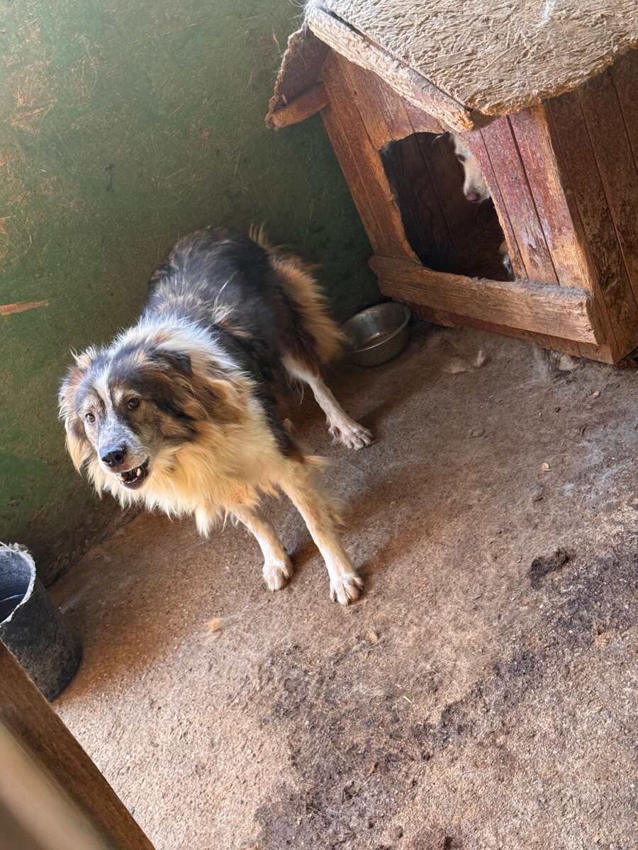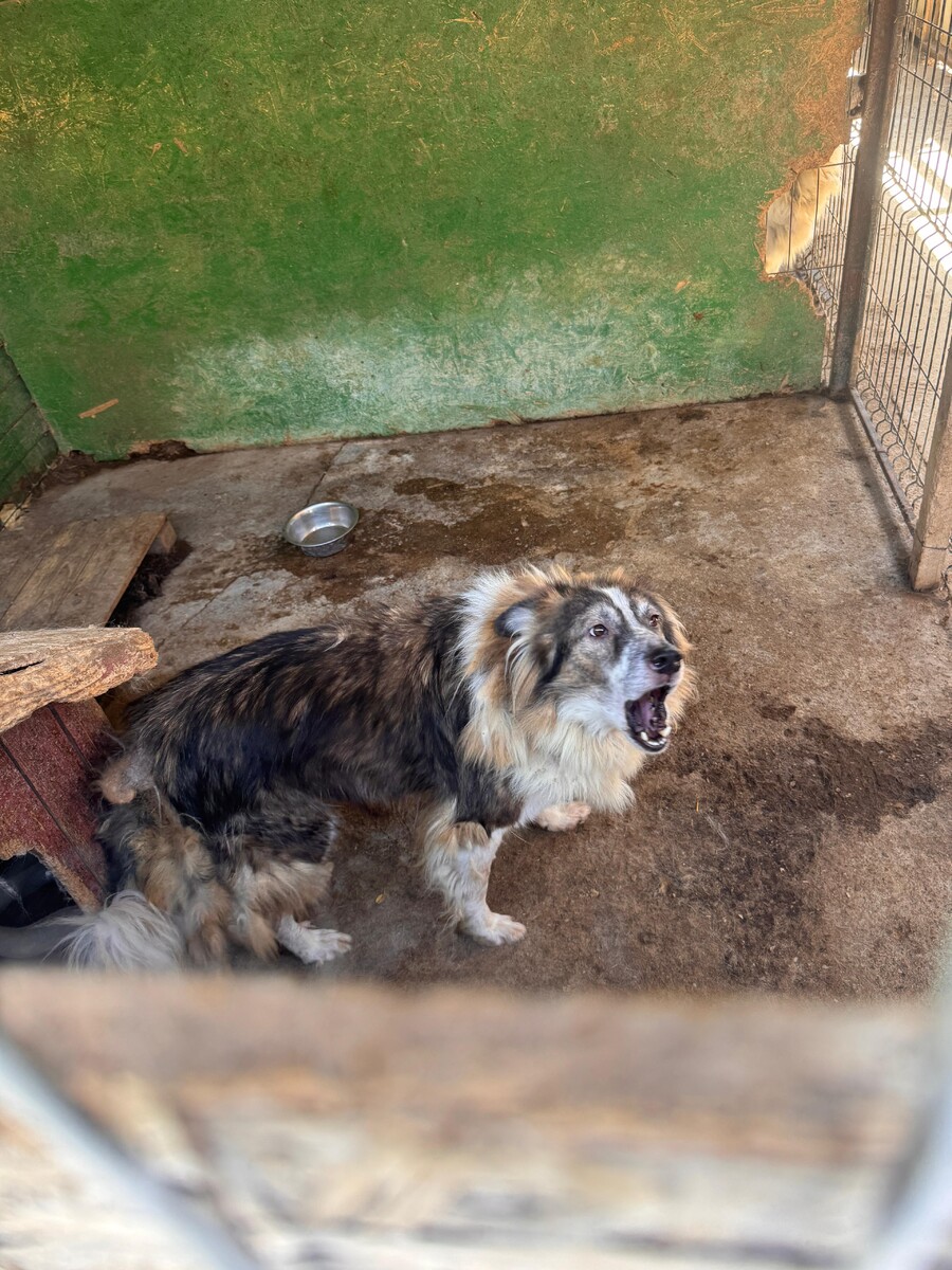 Lenny, geboren 2017 und etwa 55 cm groß, gehört zu den Hunden, die noch aus der großen Rettungsaktion in Targu Jiu 2023 stammen. Sein bisheriges Leben war geprägt von Entbehrung, Unsicherheit und fehlendem Vertrauen in den Menschen. All das hat Spuren hinterlassen, und diese zeigen sich bis heute.