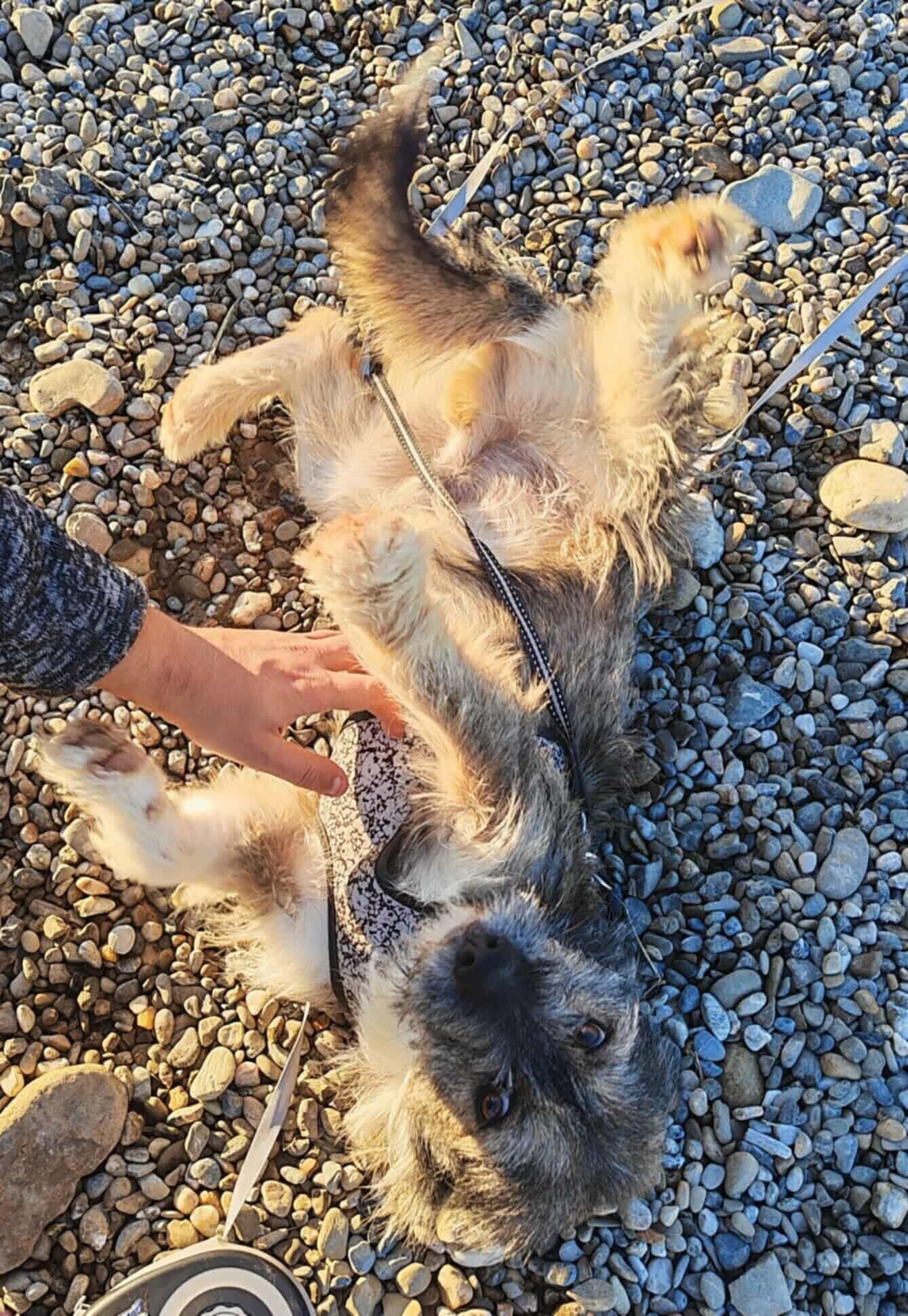 Besonders gern wirft er sich dabei auch mal auf den Rücken, um sich ausgiebig den Bauch kraulen zu lassen – ein Verhalten, das seine offene und vertrauensvolle Art widerspiegelt.
