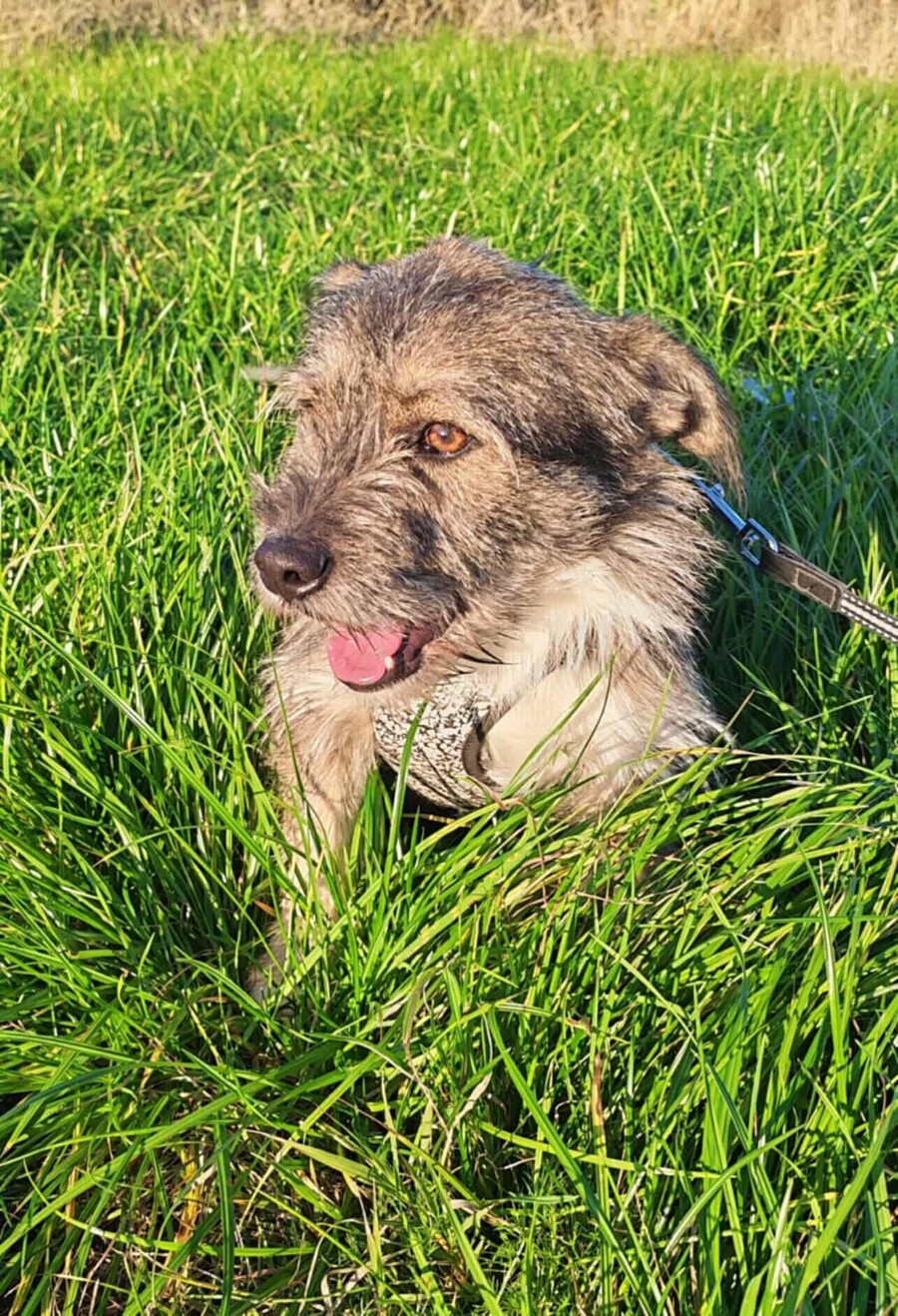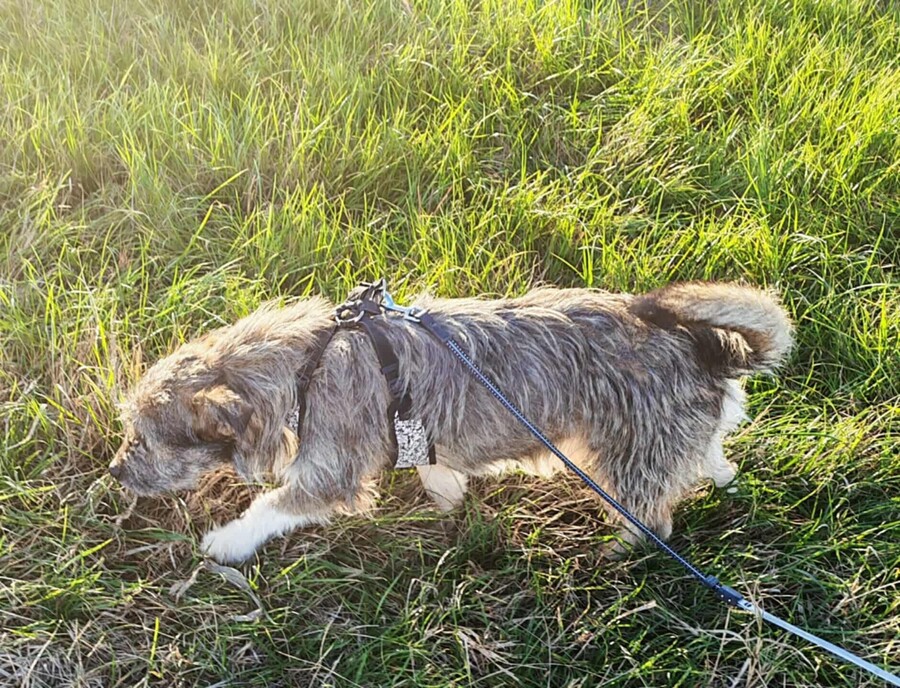 Skip, geboren 2023, ist ein kleiner Rüde mit einer Schulterhöhe von ca. 35 cm und einem Gewicht von rund 9 kg.