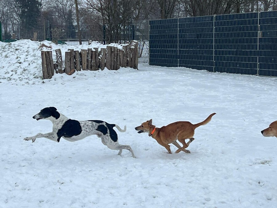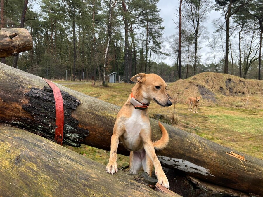 Penny ist etwa 2,5 Jahre jung, 48 cm groß und wiegt leichte 14 kg. Mit ihrem fröhlichen Wesen erobert sie wirklich jedes Herz im Nu. Zudem ist sie klug, neugierig und liebt es, draußen unterwegs zu sein. Auf den Wiesen zeigt sie ihre Windhundgene und flitzt mit einer Leichtigkeit, die einfach gute Laune macht.