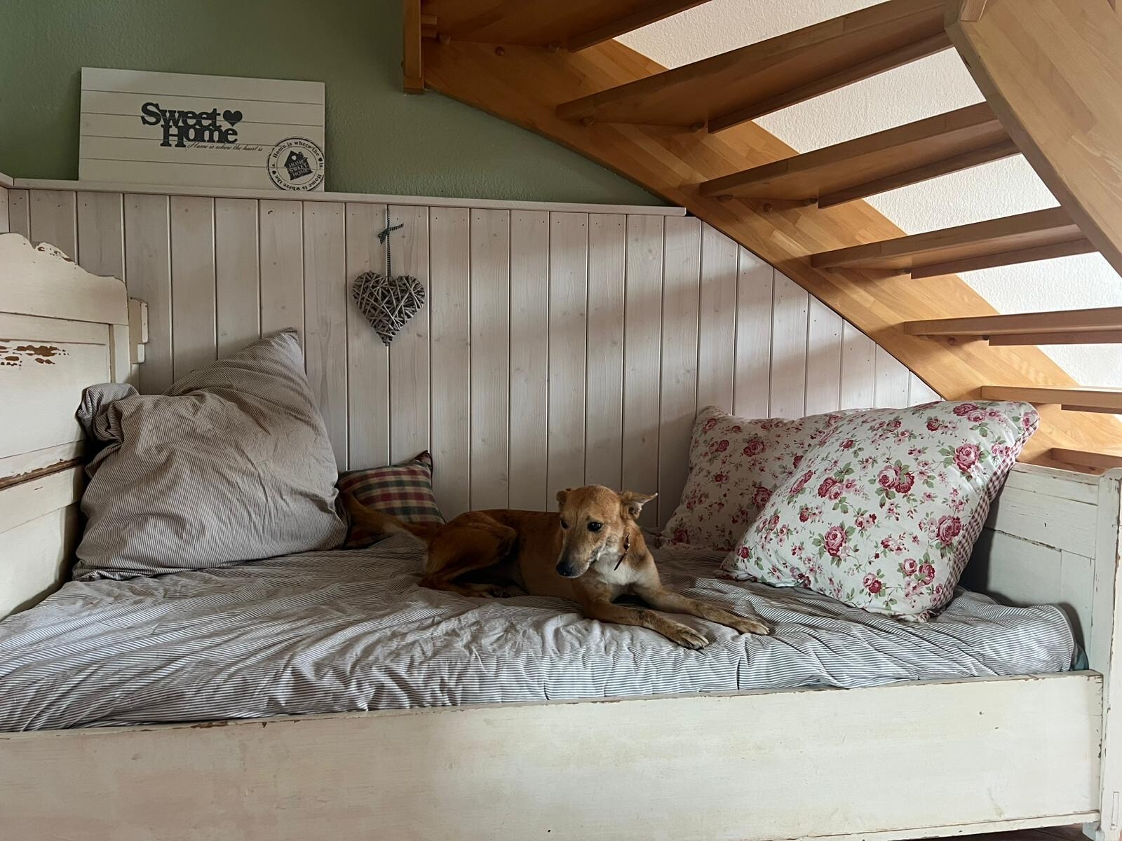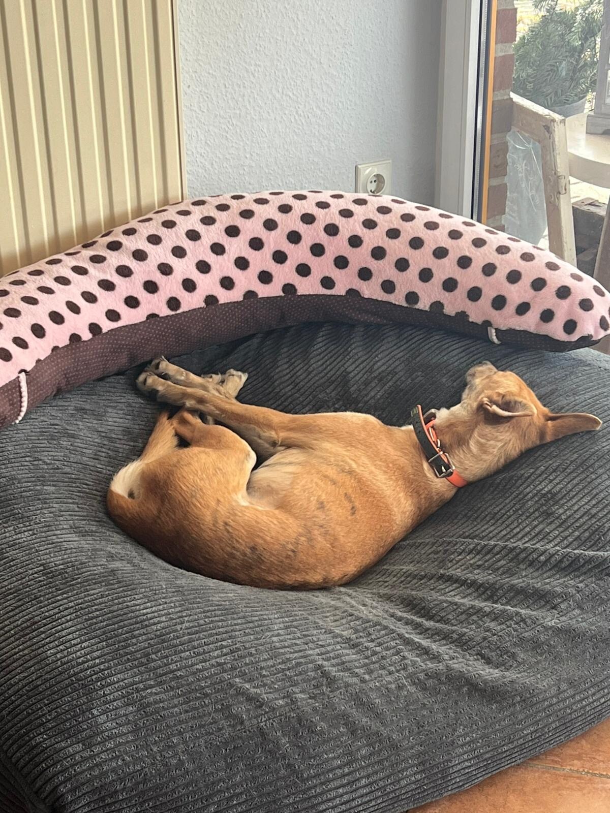 Im Haus dagegen ist sie das komplette Gegenteil: ruhig, entspannt und unglaublich angenehm. Sie kommt wunderbar zur Ruhe und liegt am liebsten in der Nähe ihrer Menschen.