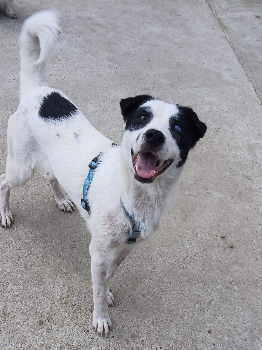 Milko hat auf dem linken Auge eine Hornhauttrübung, die er schon vor seiner Rettung als Welpe hatte. Wahrscheinlich kann er auf diesem Auge nicht sehen, doch er selbst empfindet dies nicht als Einschränkung.