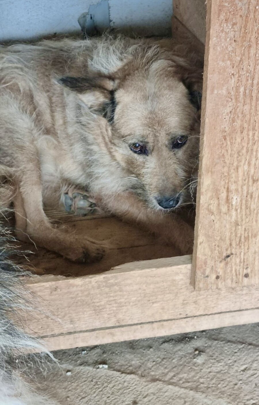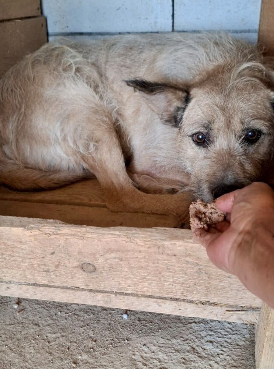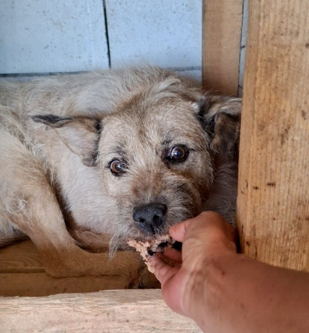 Pablo ist etwa 2014 geboren, ca. 45cm groß, distanziert und ein Hund, der sich im Laufe der Jahre aufgegeben hat.