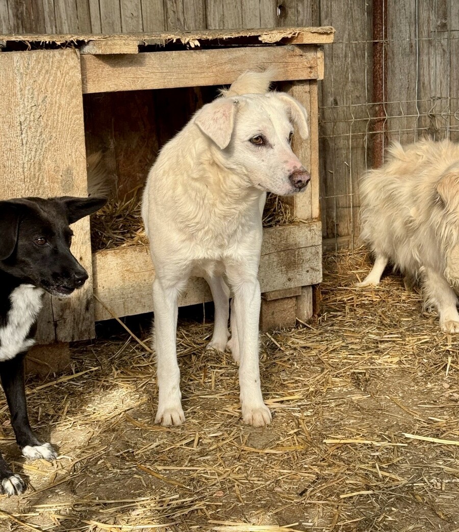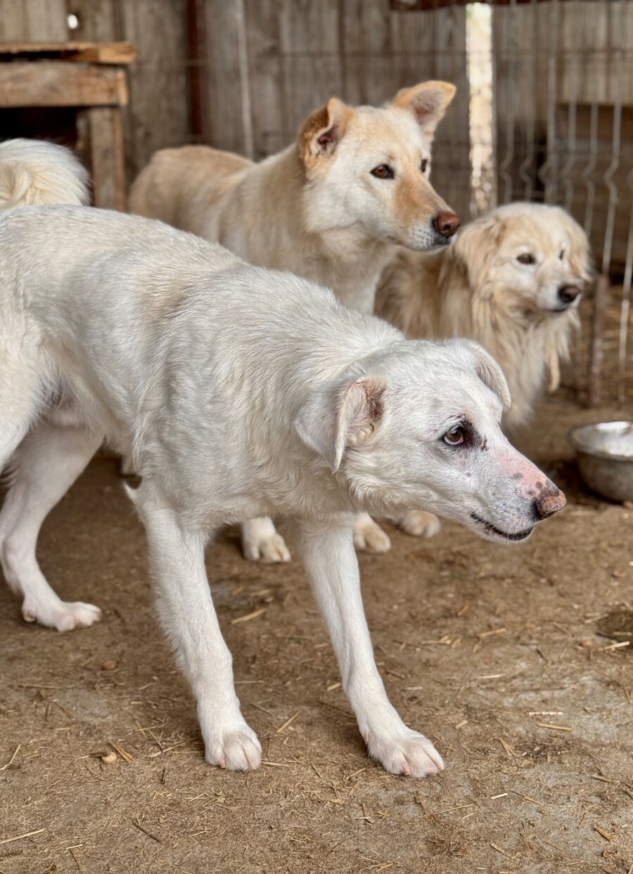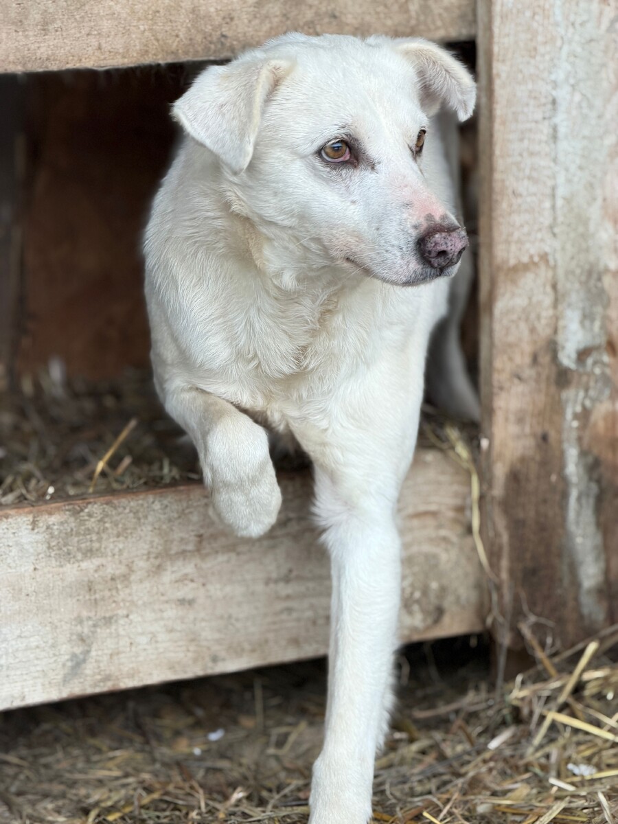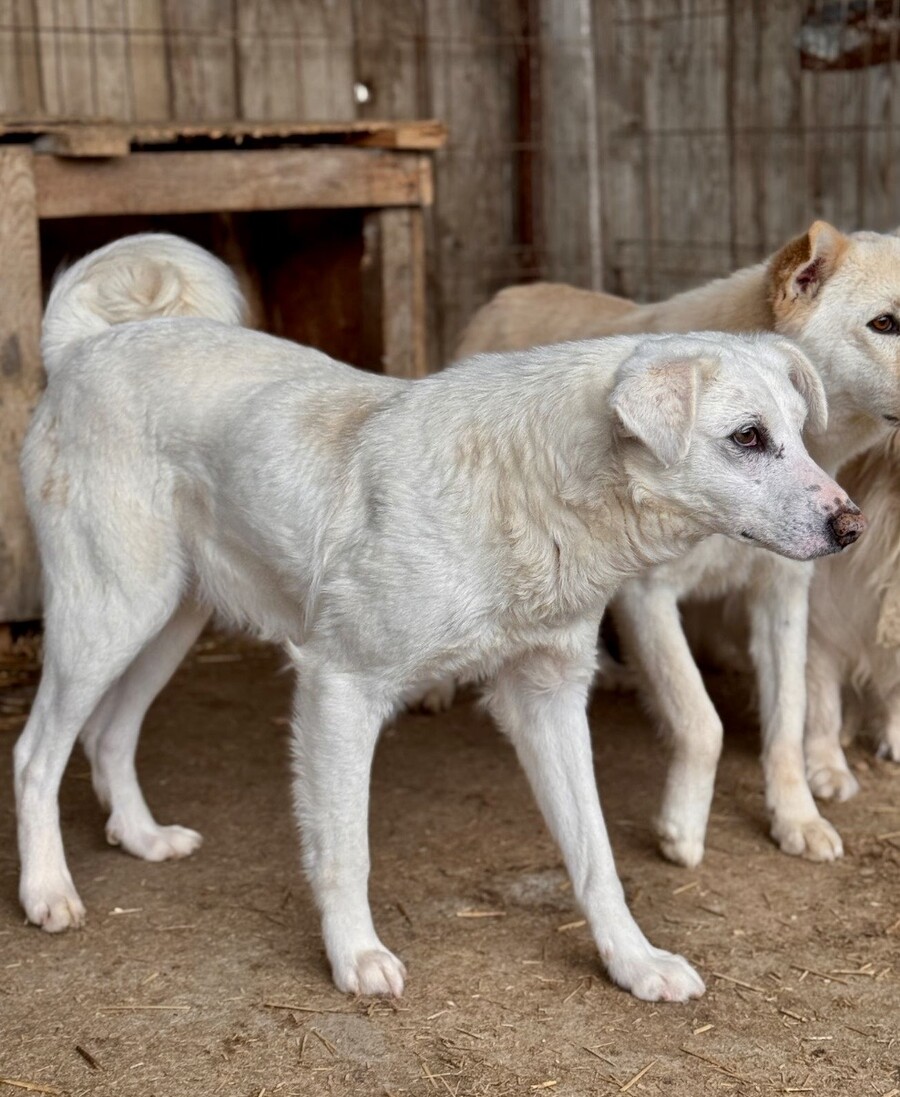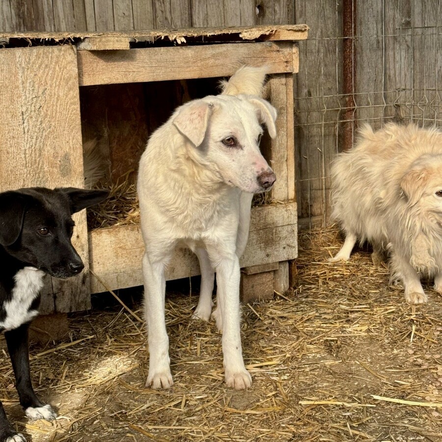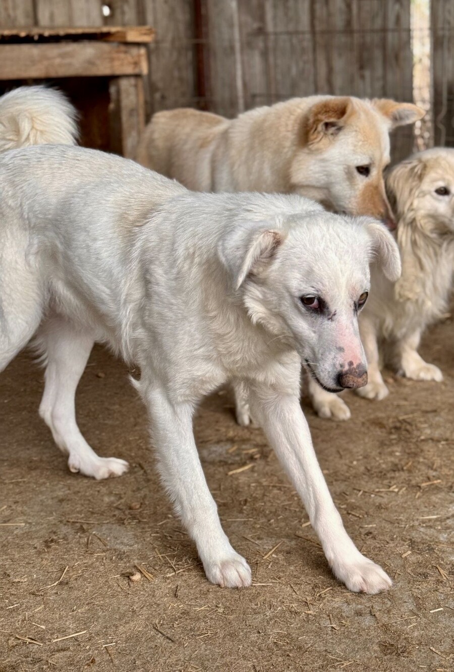 Snow, geboren 2017 und etwa 60–65 cm groß, ist ein verträglicher, unsicherer, aber neugieriger Rüde, der in seinem Wesen viel Sanftheit trägt. Viele Jahre lebte er harmonisch in einer gemischten Vierergruppe – ein Zeichen dafür, wie sozial und friedlich er mit anderen Hunden umgeht. Er ist keiner, der Streit sucht, sondern einer, der Ruhe liebt und sich an klaren Strukturen orientiert.