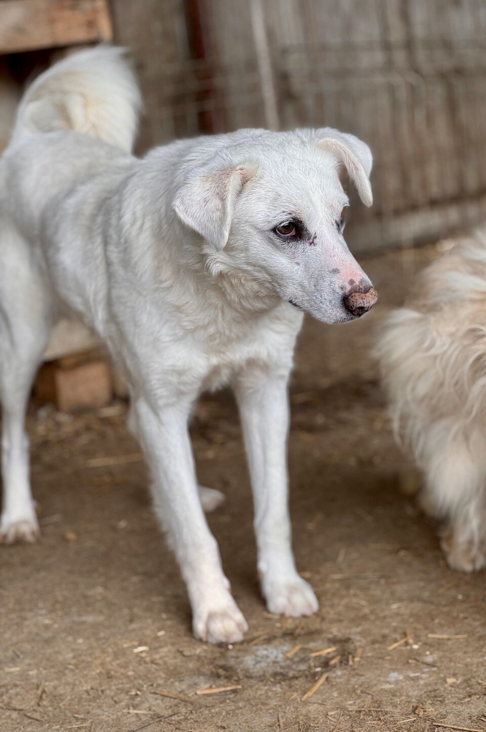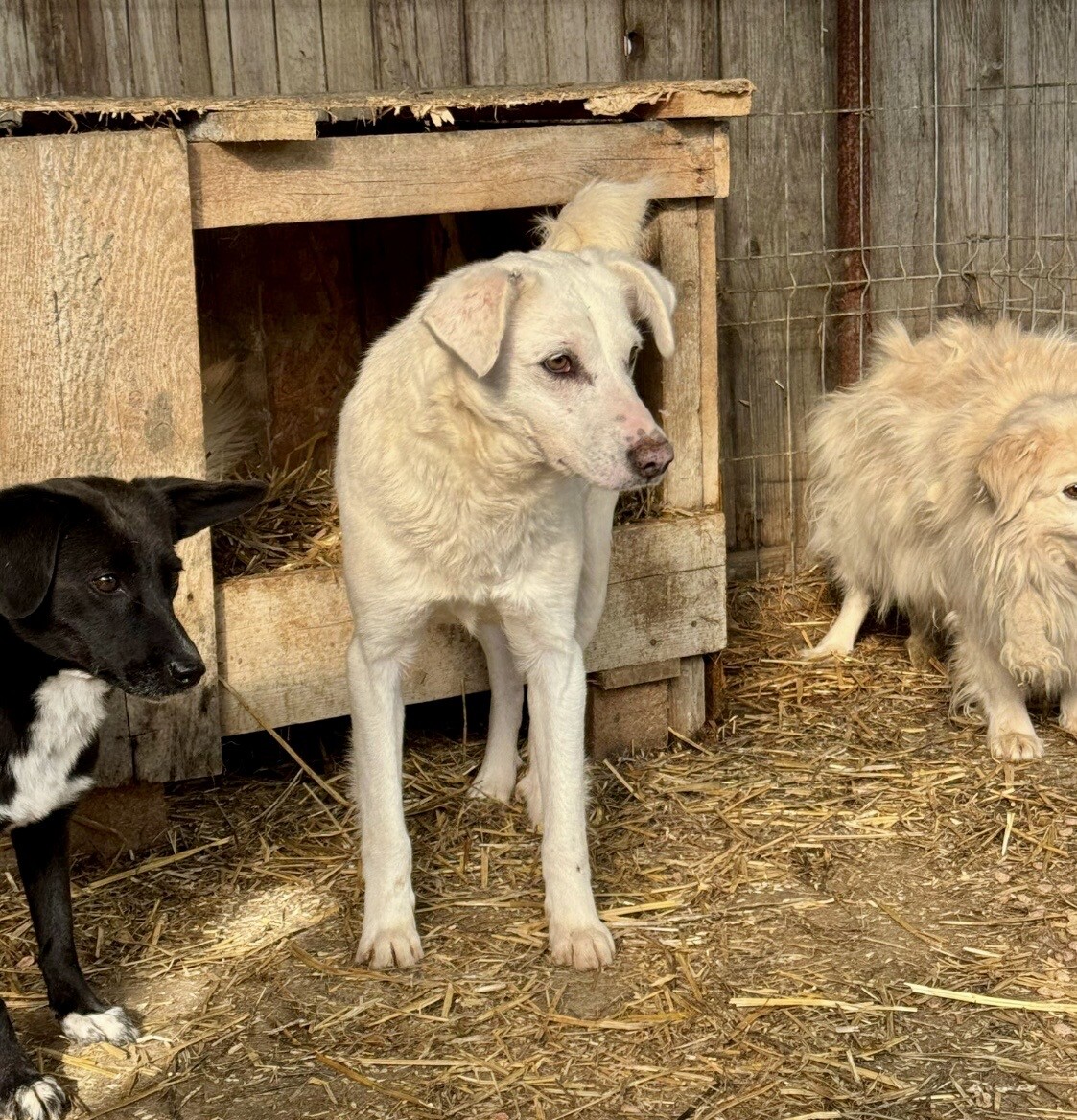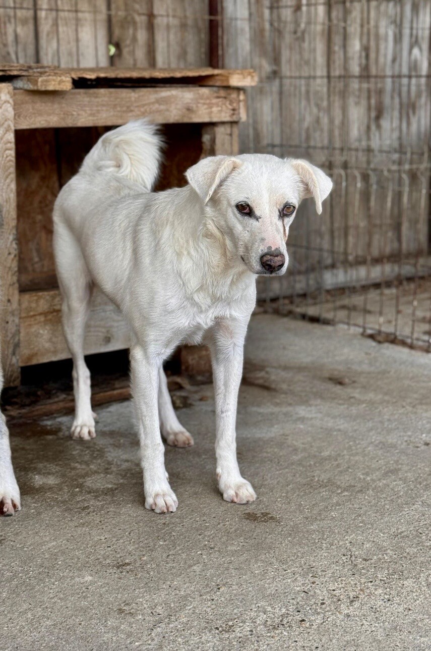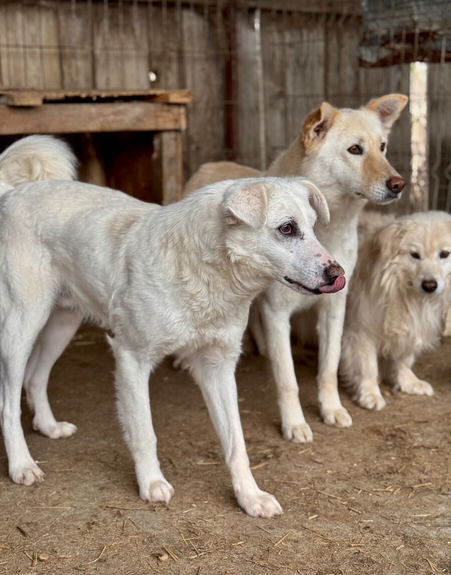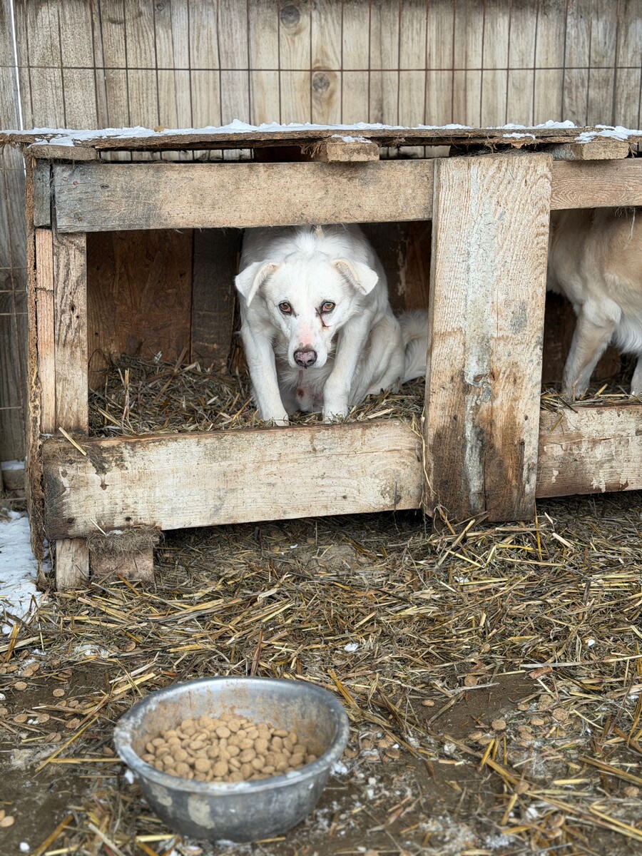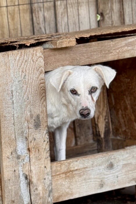 Snow, geboren 2017 und etwa 60–65 cm groß, ist ein verträglicher, unsicherer, aber neugieriger Rüde, der in seinem Wesen viel Sanftheit trägt. Viele Jahre lebte er harmonisch in einer gemischten Vierergruppe – ein Zeichen dafür, wie sozial und friedlich er mit anderen Hunden umgeht. Er ist keiner, der Streit sucht, sondern einer, der Ruhe liebt und sich an klaren Strukturen orientiert.