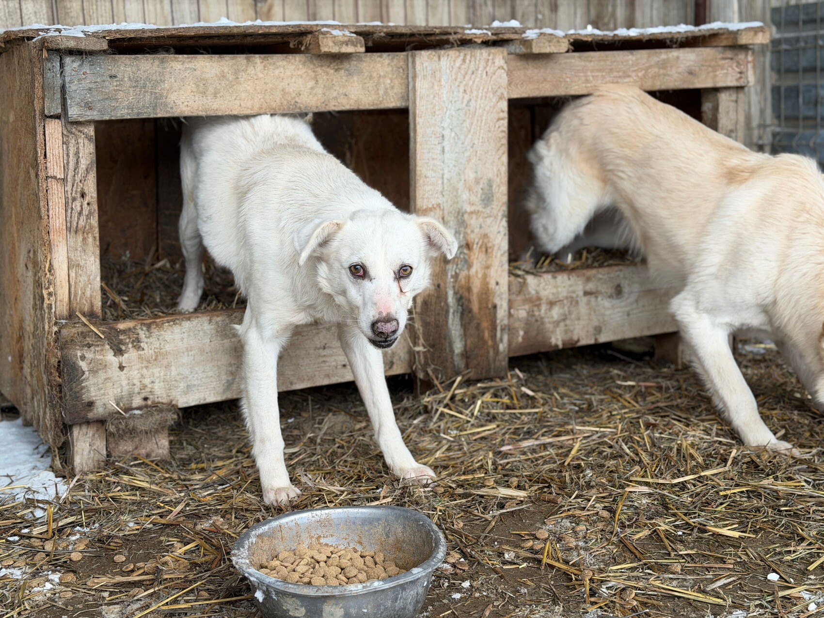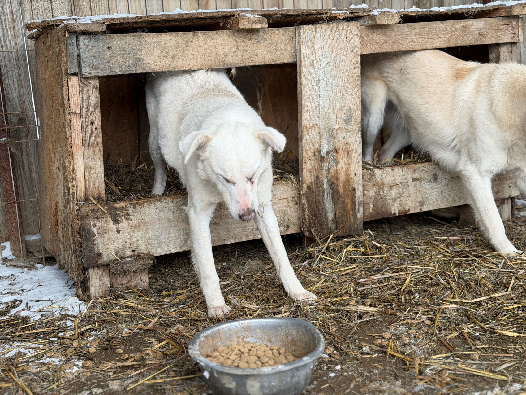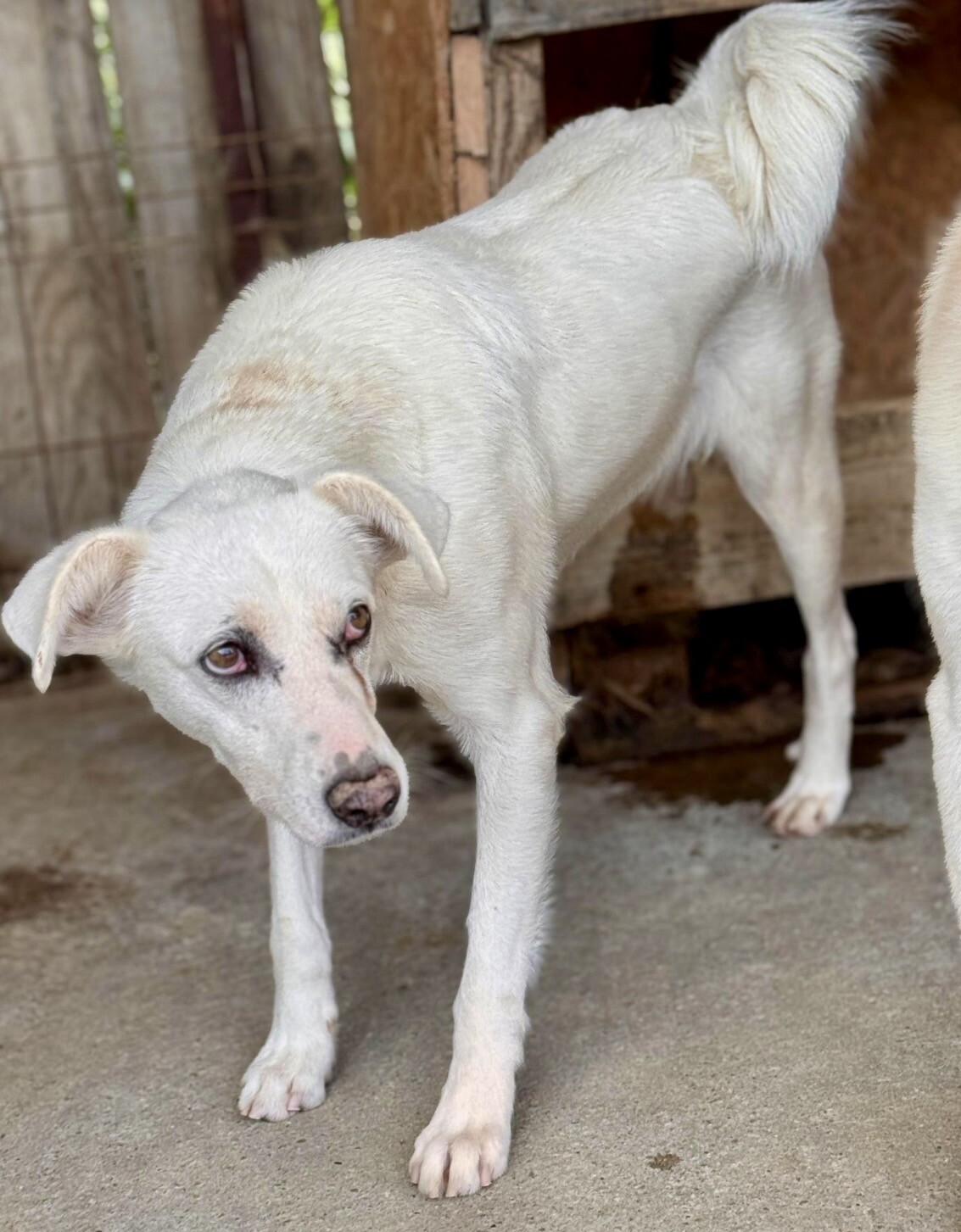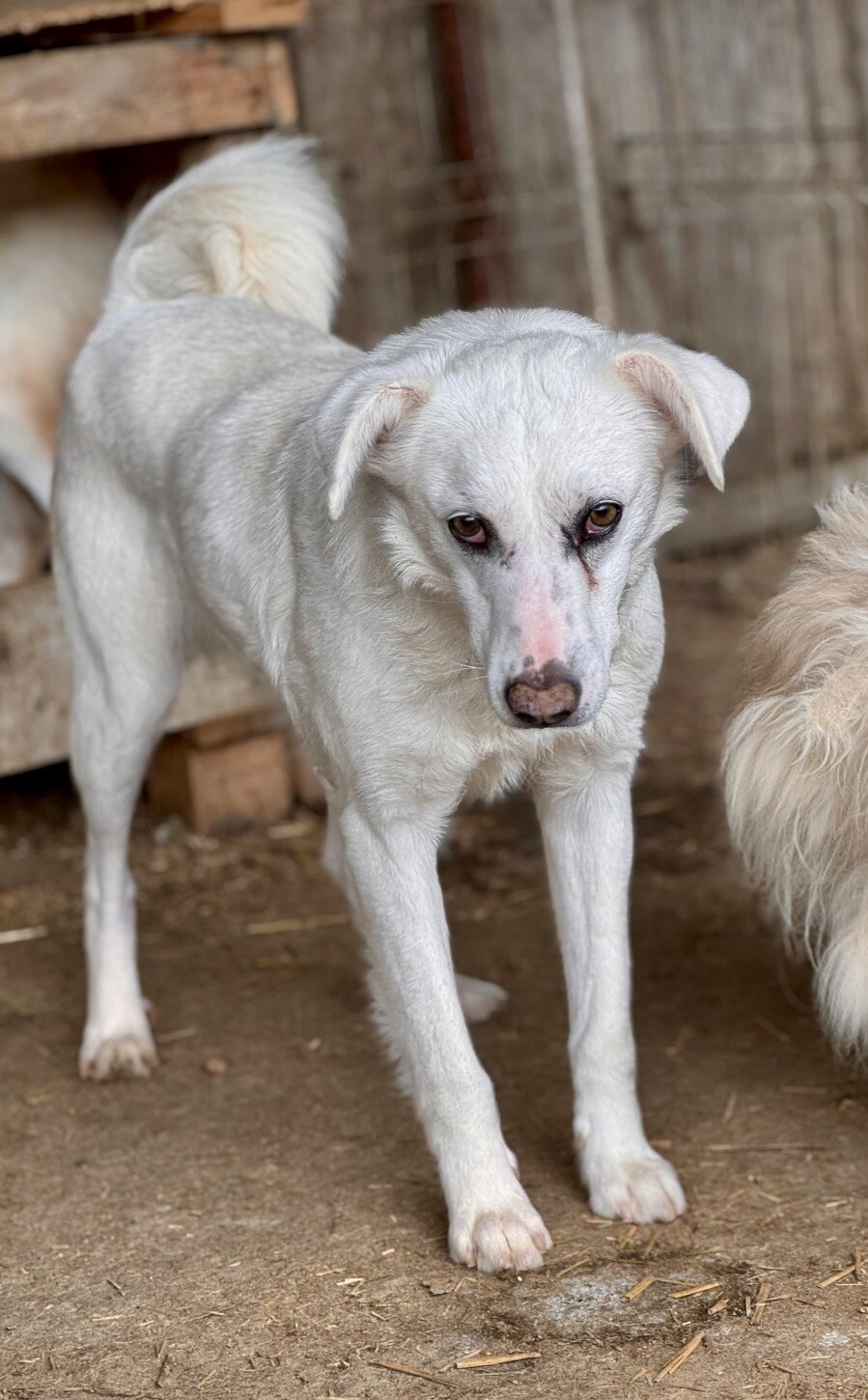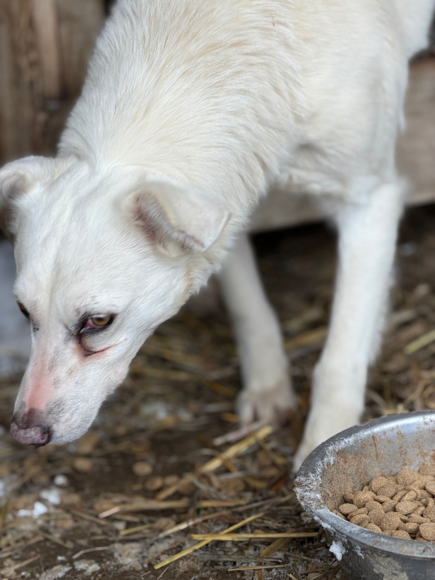 Snow, geboren 2017 und etwa 60–65 cm groß, ist ein verträglicher, unsicherer, aber neugieriger Rüde, der in seinem Wesen viel Sanftheit trägt. Viele Jahre lebte er harmonisch in einer gemischten Vierergruppe – ein Zeichen dafür, wie sozial und friedlich er mit anderen Hunden umgeht. Er ist keiner, der Streit sucht, sondern einer, der Ruhe liebt und sich an klaren Strukturen orientiert.