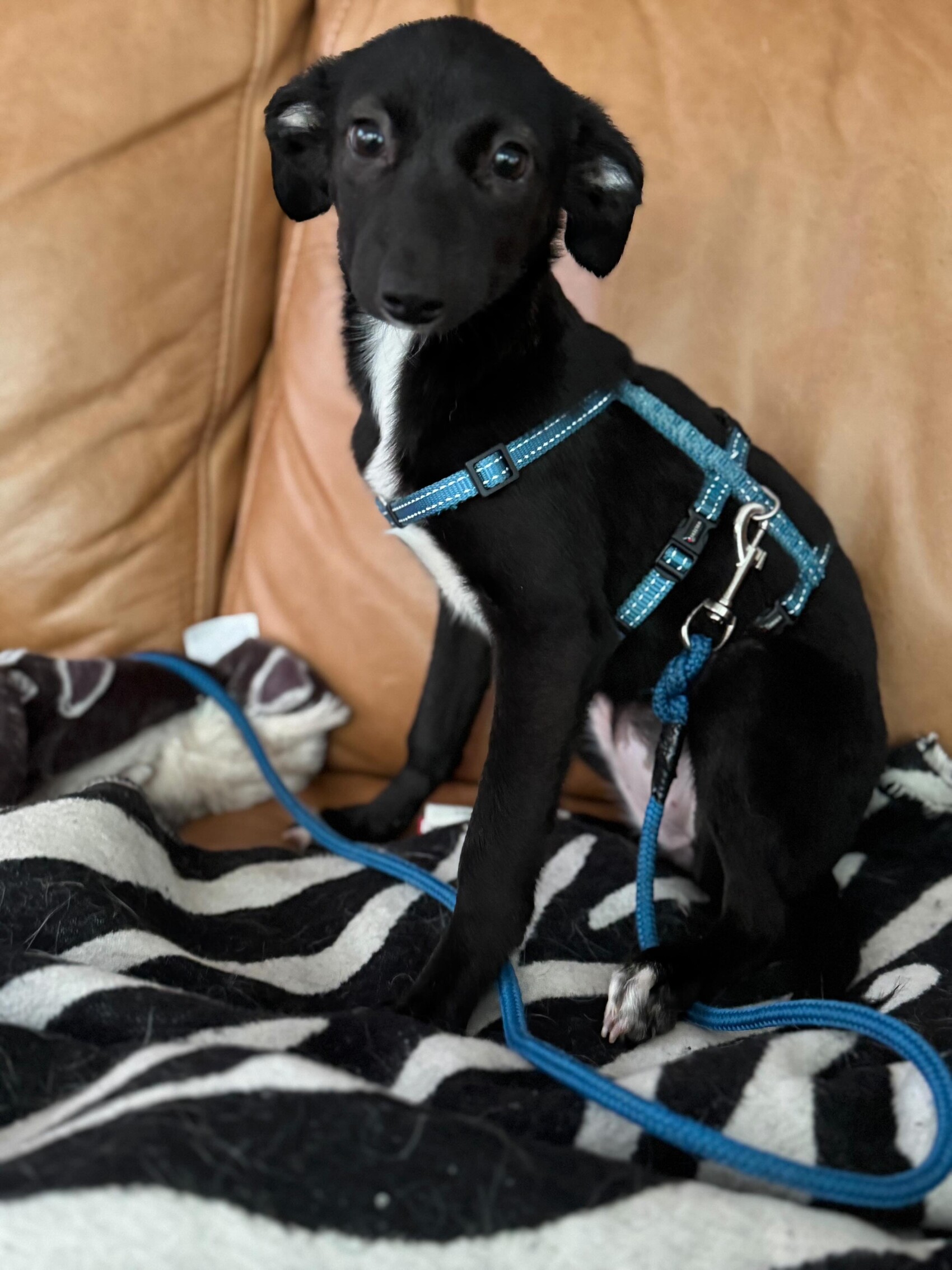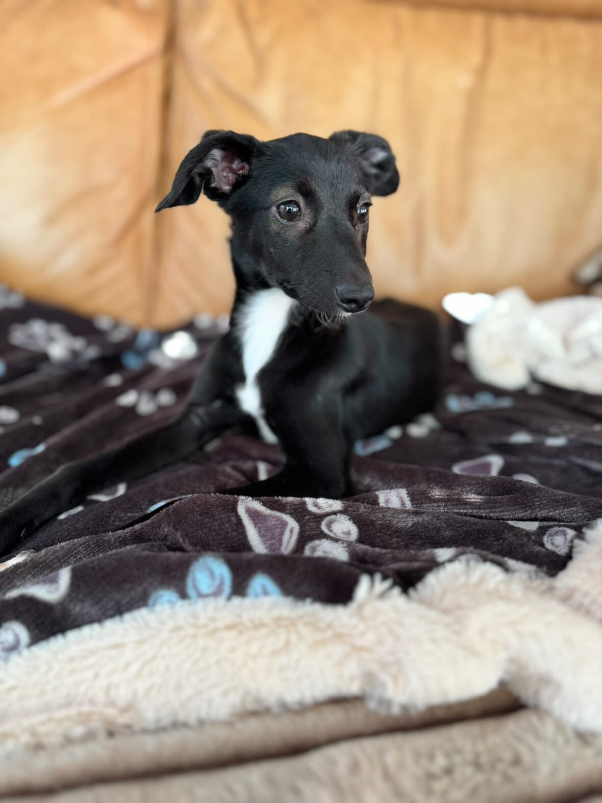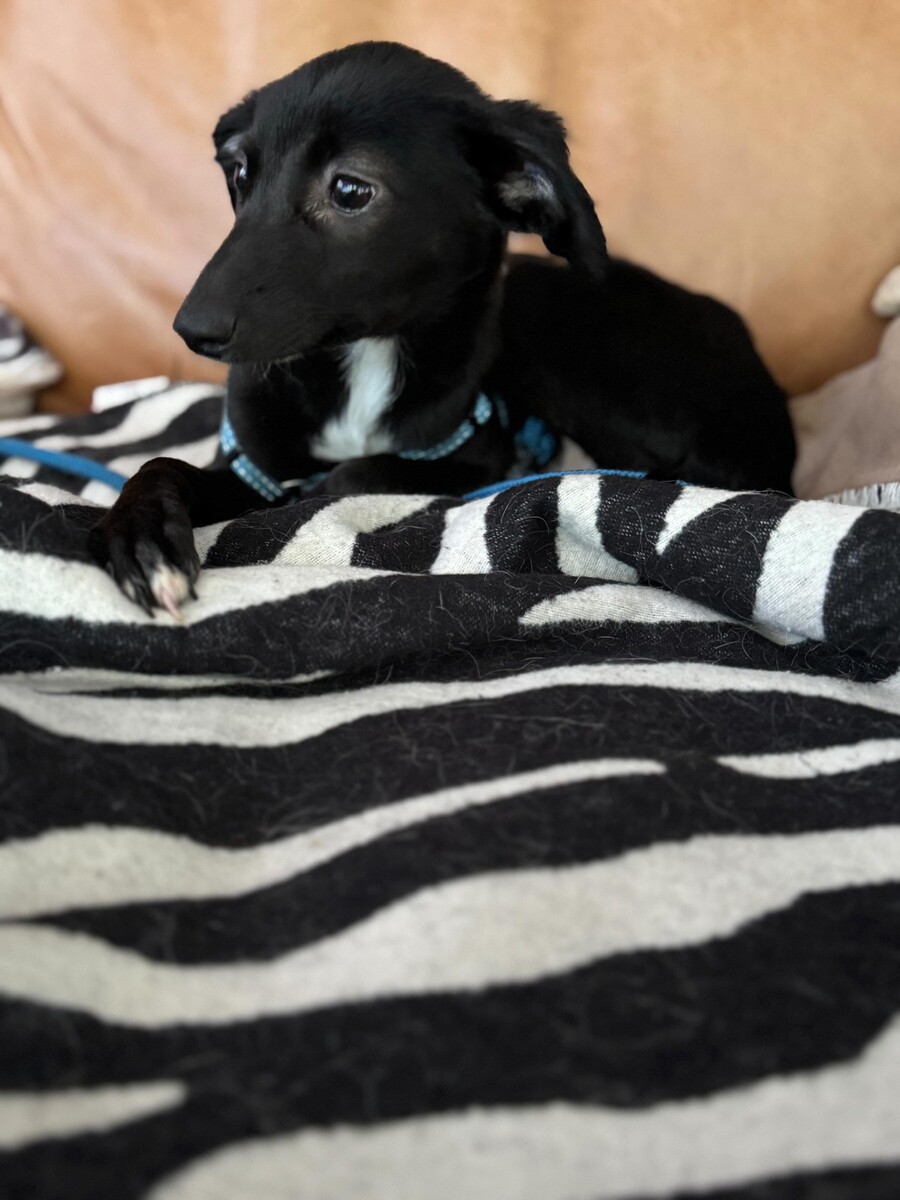 Mia ist mit ihren etwa vier Monaten (*02.06.2025) ein richtiger Wirbelwind voller Lebensfreude. Erst seit kurzer Zeit lebt sie bei ihrer Pflegefamilie (Ankunft Oktober 2025), doch schon jetzt zeigt sie, wie neugierig, klug und lernfreudig sie ist. Für Mia ist alles neu und spannend – schließlich hat sie in ihrem bisherigen jungen Leben noch nicht viel kennenlernen dürfen. Wir vermuten, dass sie etwa bei Windspielgröße (30-35 cm) bleiben wird, wenn sie ausgewachsen ist.