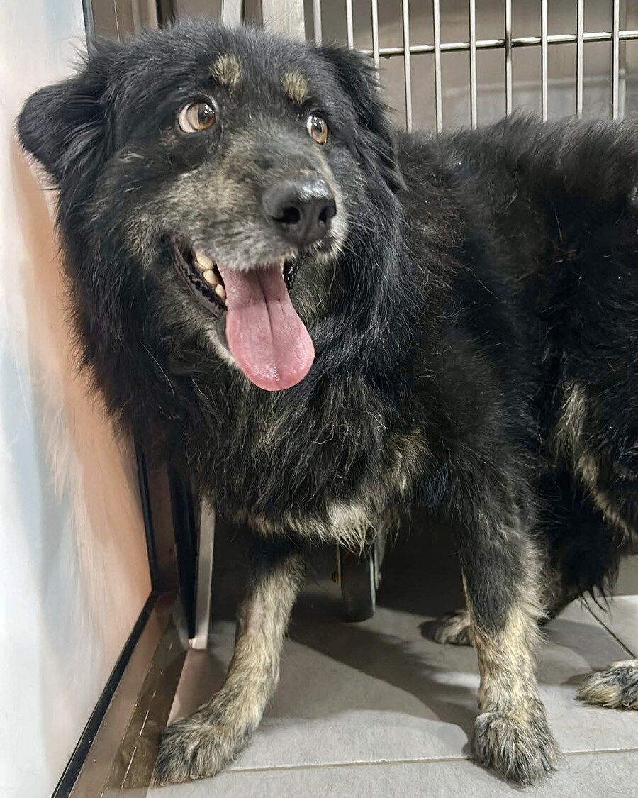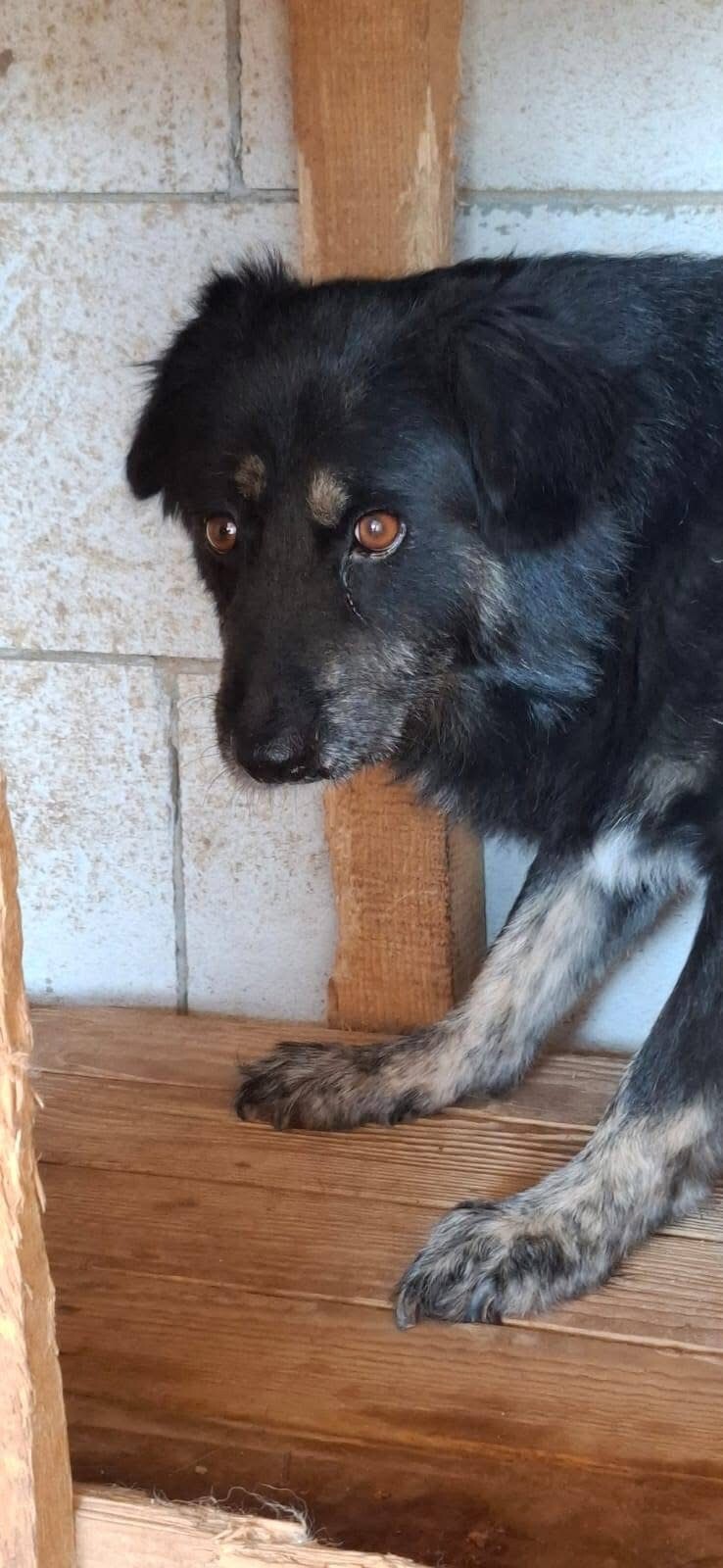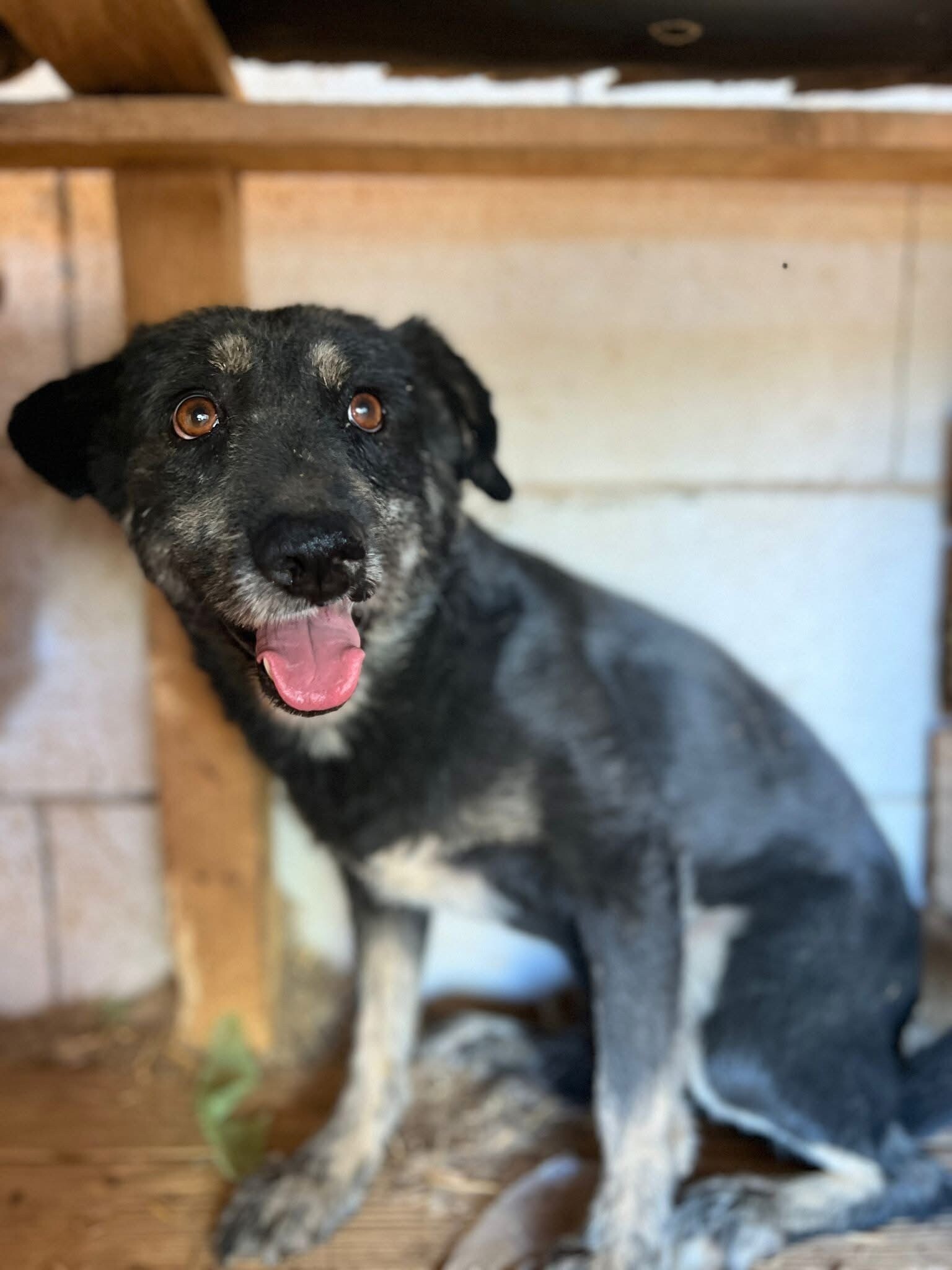 Silas, geboren 2017 und etwa 50 cm groß, ist ein ruhiger, freundlicher Rüde, der mit seiner sanften Art und seinem weichen, schwarzen Fell sofort auffällt. Er ist neugierig, beobachtet das Geschehen aufmerksam, braucht jedoch noch etwas Zeit und Mut, um auf fremden Menschen zu vertrauen. Er verlässt bei Besuch zwar seine Hütte und lässt sich mit Futter ein Stück weit anlocken, doch insgesamt zählt er zu unseren schüchternen Hunden.