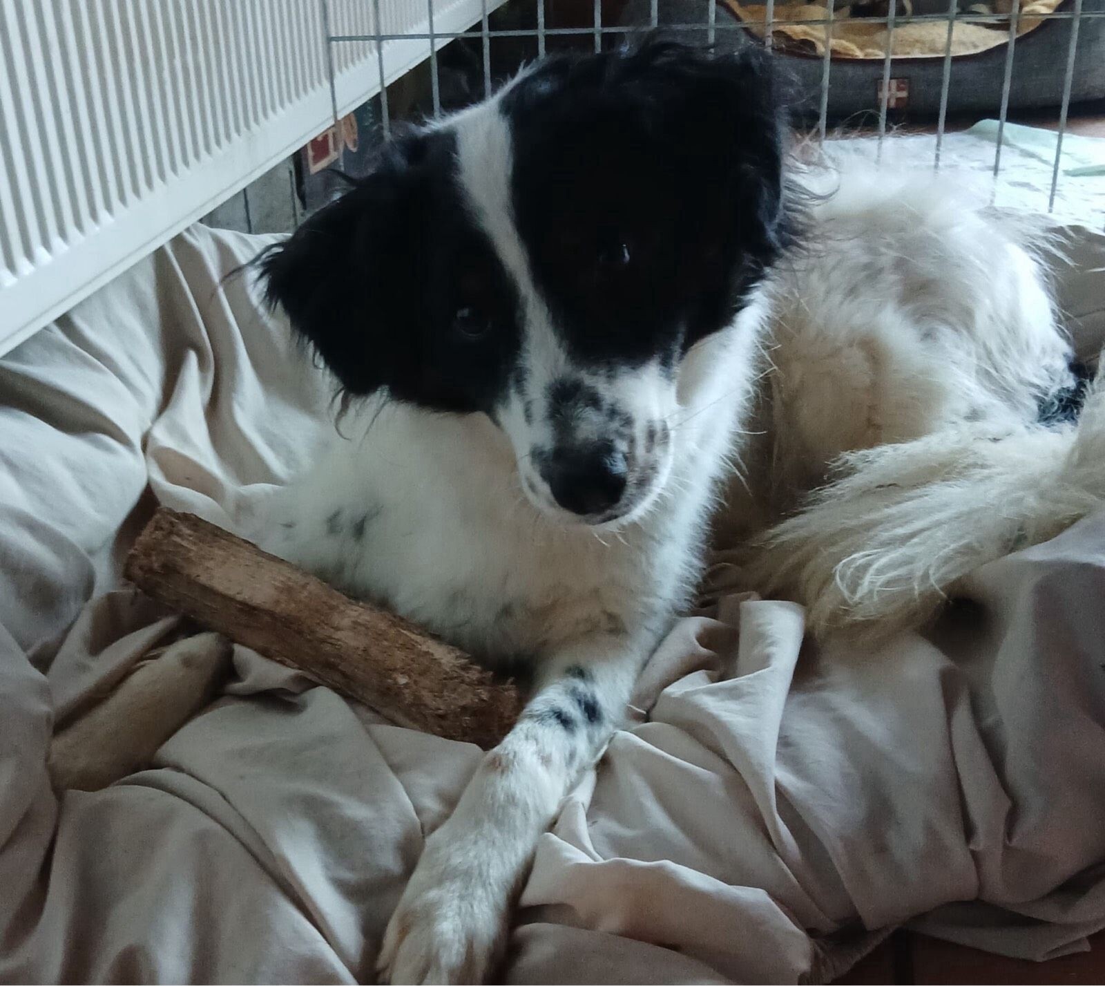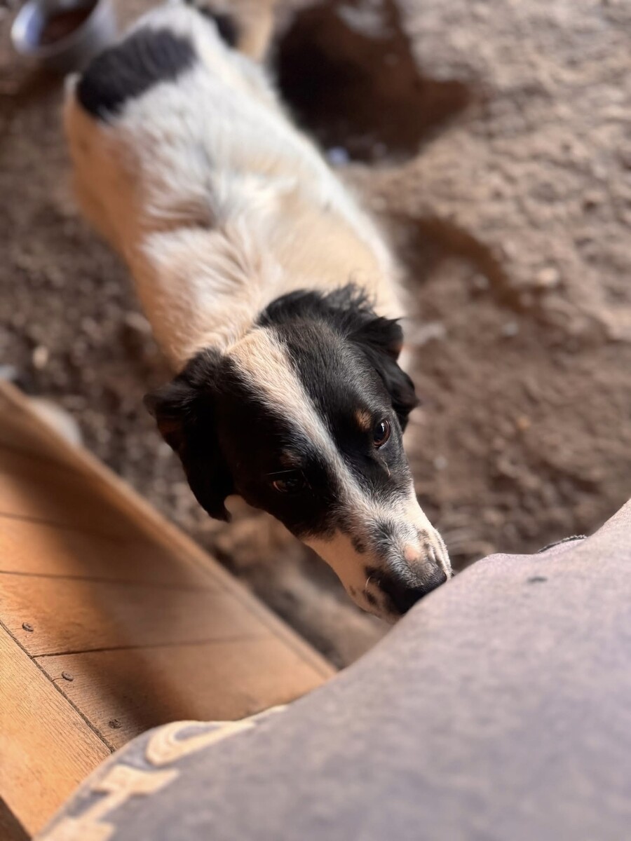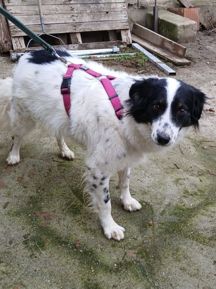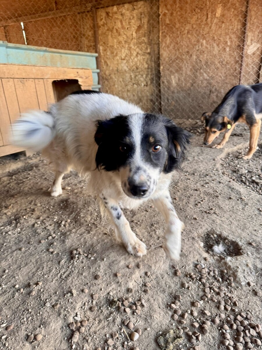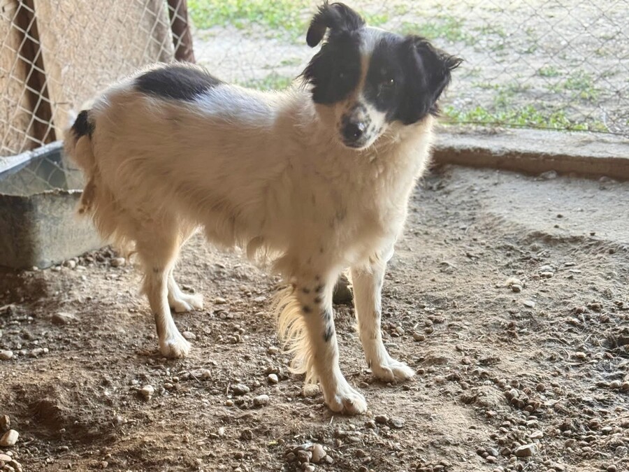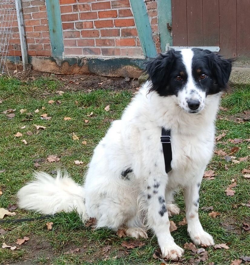 Fiete ist ein etwa 2022 geborener, rund 50–55 cm großer Rüde mit einem wunderschönen, mittellangen Fell in Weiß mit schwarzen Abzeichen und einem offenen, neugierigen Blick. Sein fröhliches Wesen und seine positive Ausstrahlung machen ihn zu einem ganz besonderen Hund, der Herzen im Sturm erobert.