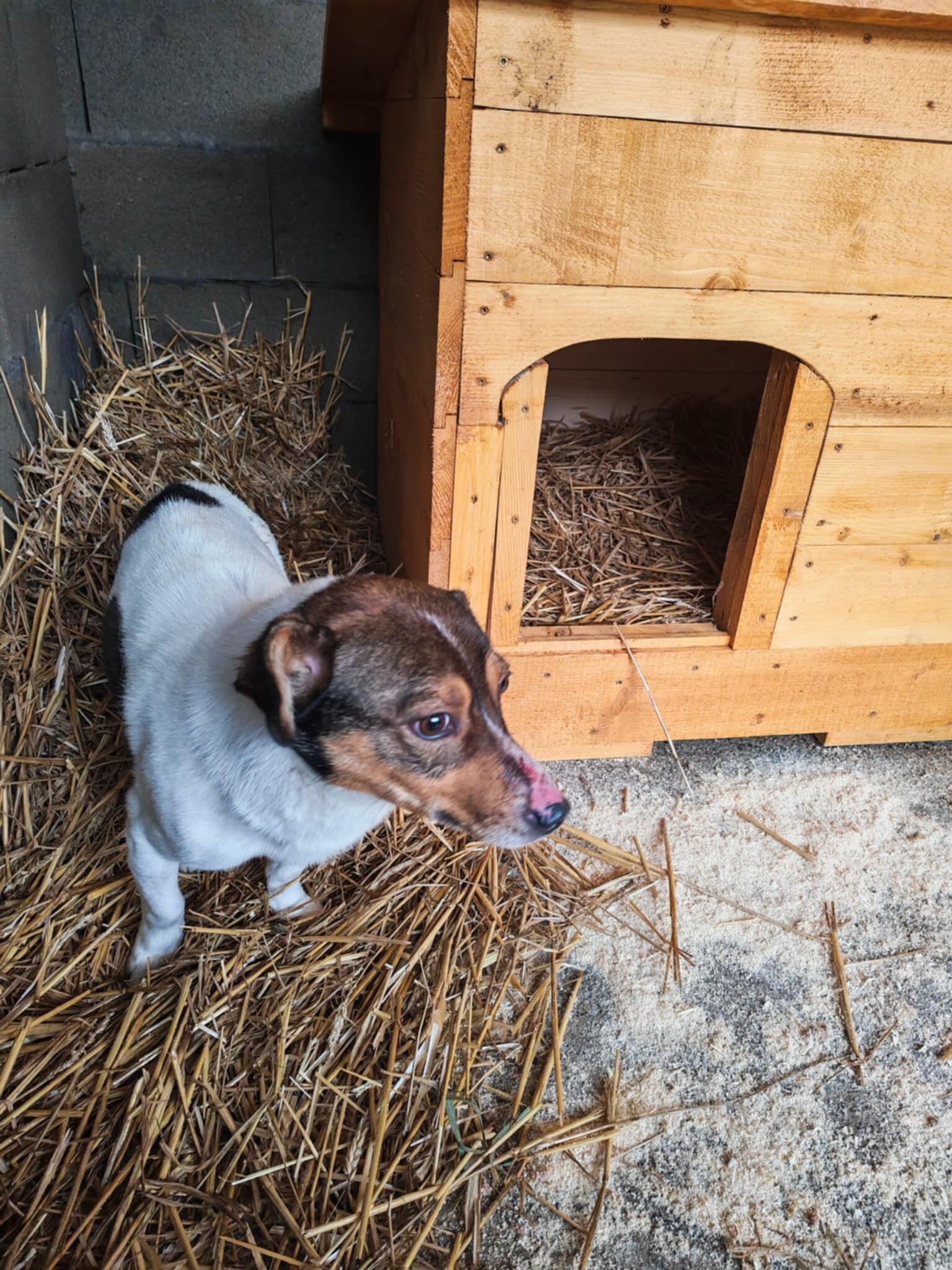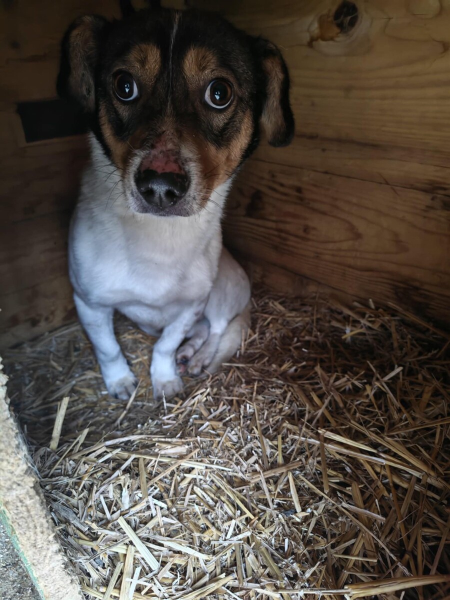 Mittlerweile zeigt er jedoch erste, leise Schritte in Richtung Vertrauen. Im Schutz seiner Hütte nimmt er vorsichtig Leckerchen aus der Hand – und als kleines Dankeschön verteilt er sogar schon Küsschen. Für einen Hund, der erst seit kurzer Zeit in Sicherheit ist, ist das ein bemerkenswerter Fortschritt.