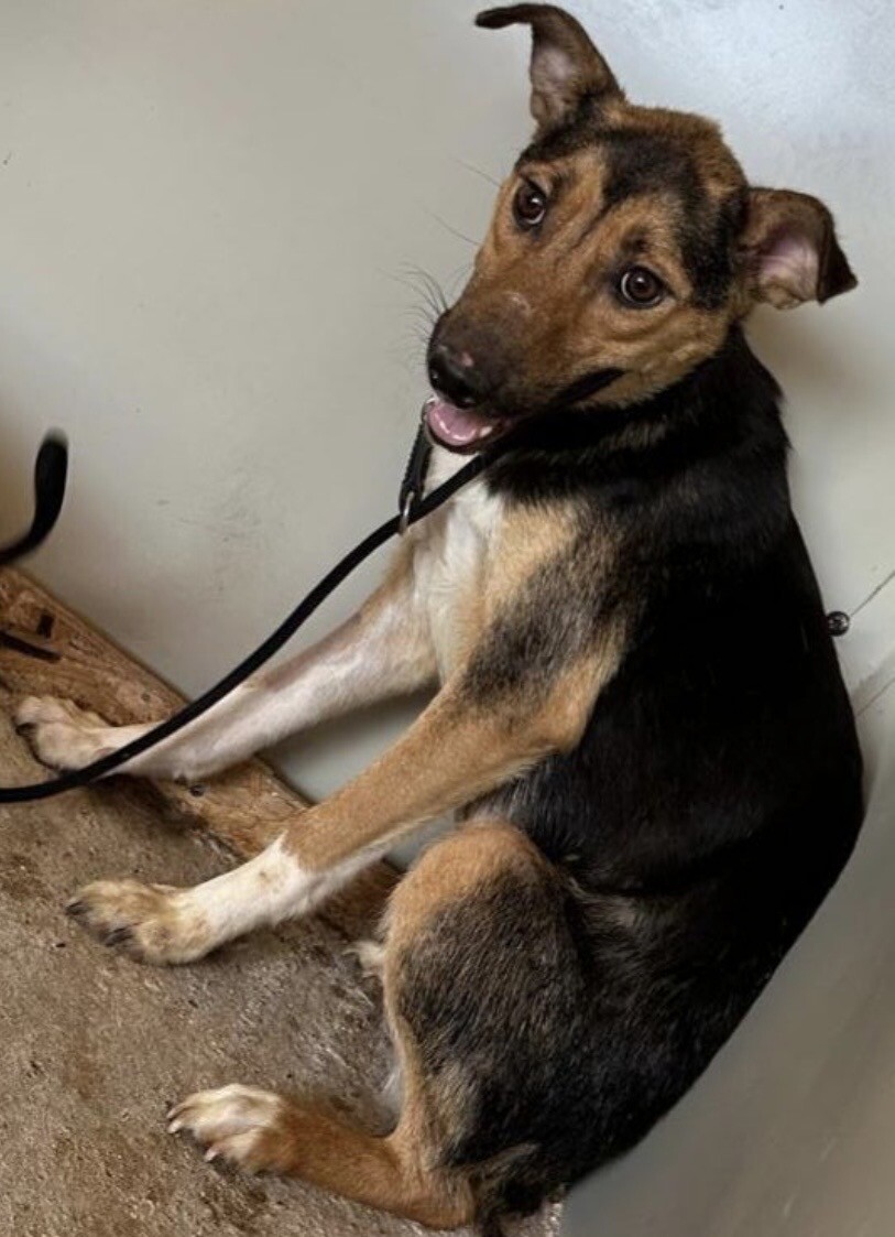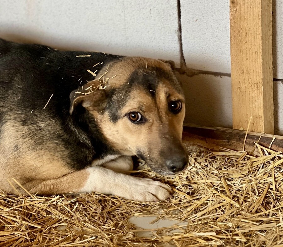 Shine the Light, geboren 2022 und etwa 47 cm groß, wurde 2024 aus dem Public Shelter Husi gerettet. Dort hatte die junge Hündin fünf Welpen zur Welt gebracht – und verlor sie alle. Der Schmerz darüber stürzte sie in eine tiefe Depression, wie man es leider so oft bei Müttern sieht, die ihre Babys im Shelter verlieren müssen.