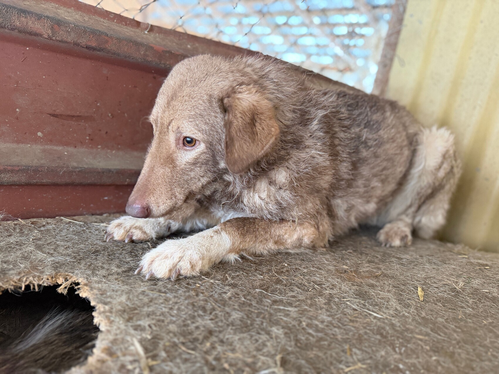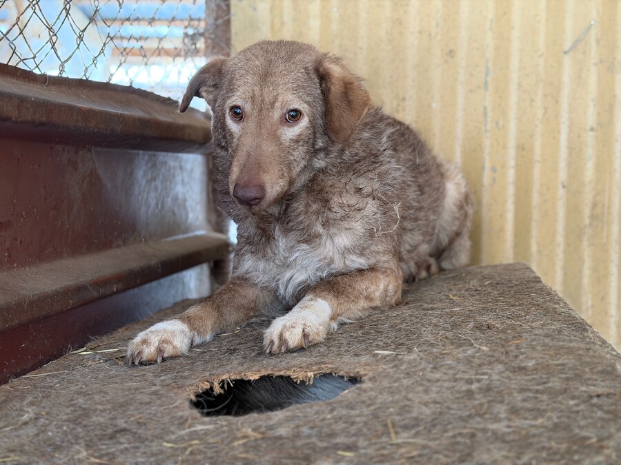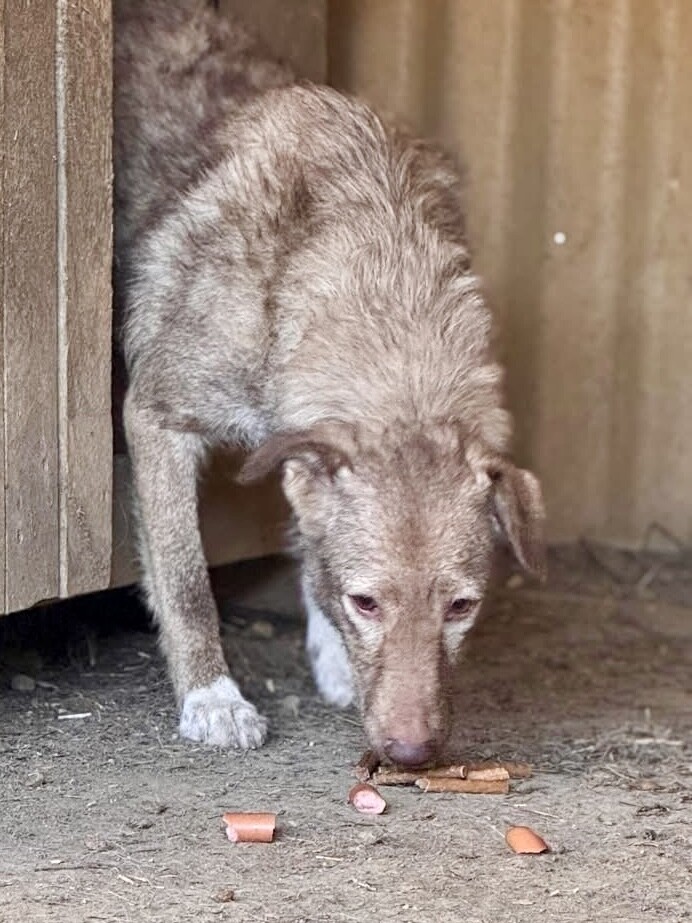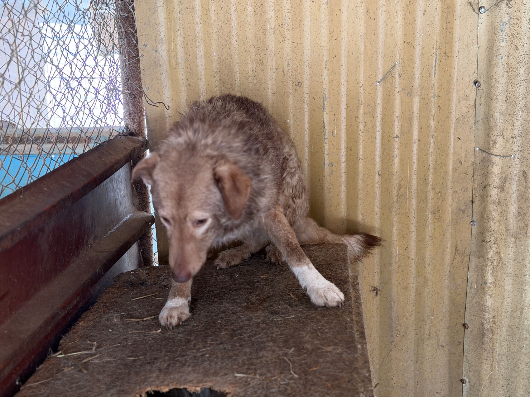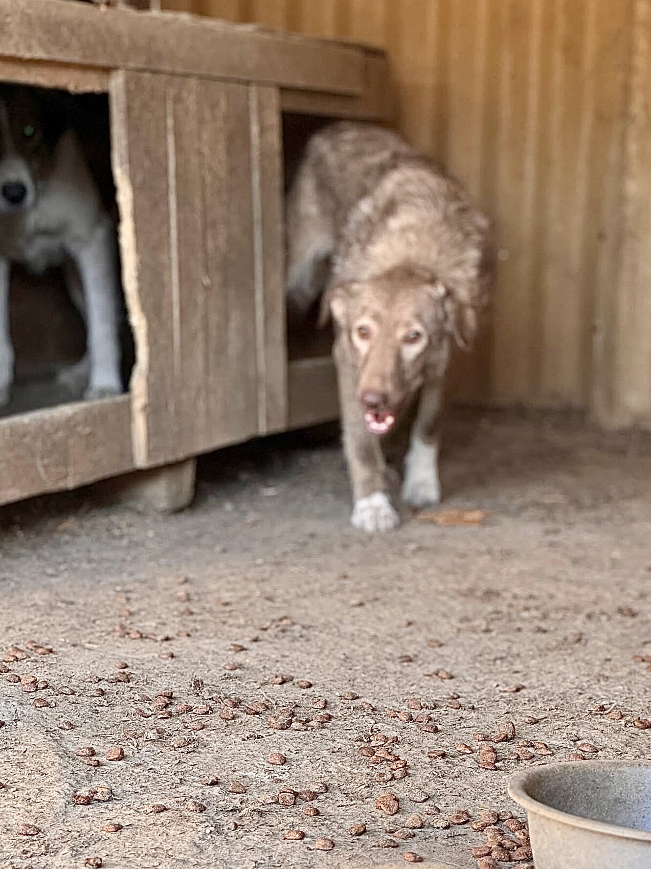 Amalia, geboren 2019 und etwa 50 cm groß, ist eine wunderschöne Hündin mit einer außergewöhnlichen, aparten Fellfarbe. Doch hinter ihrem hübschen Äußeren verbirgt sich ein trauriges Schicksal: Amalia ist sehr scheu und hat bisher kein Vertrauen zu Menschen.