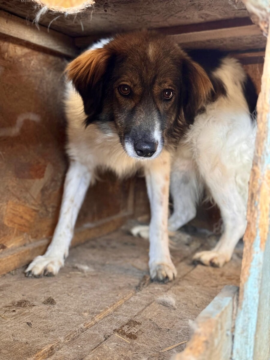 Christopher, geboren 2019 und etwa 54 cm groß, ist ein wunderschöner Mischlingshund. Seit Juni 2023 lebt er im Shelter von Campurelu, nachdem er zuvor aus der bedrückenden Enge des öffentlichen Shelters in Targu Jiu gerettet wurde.
