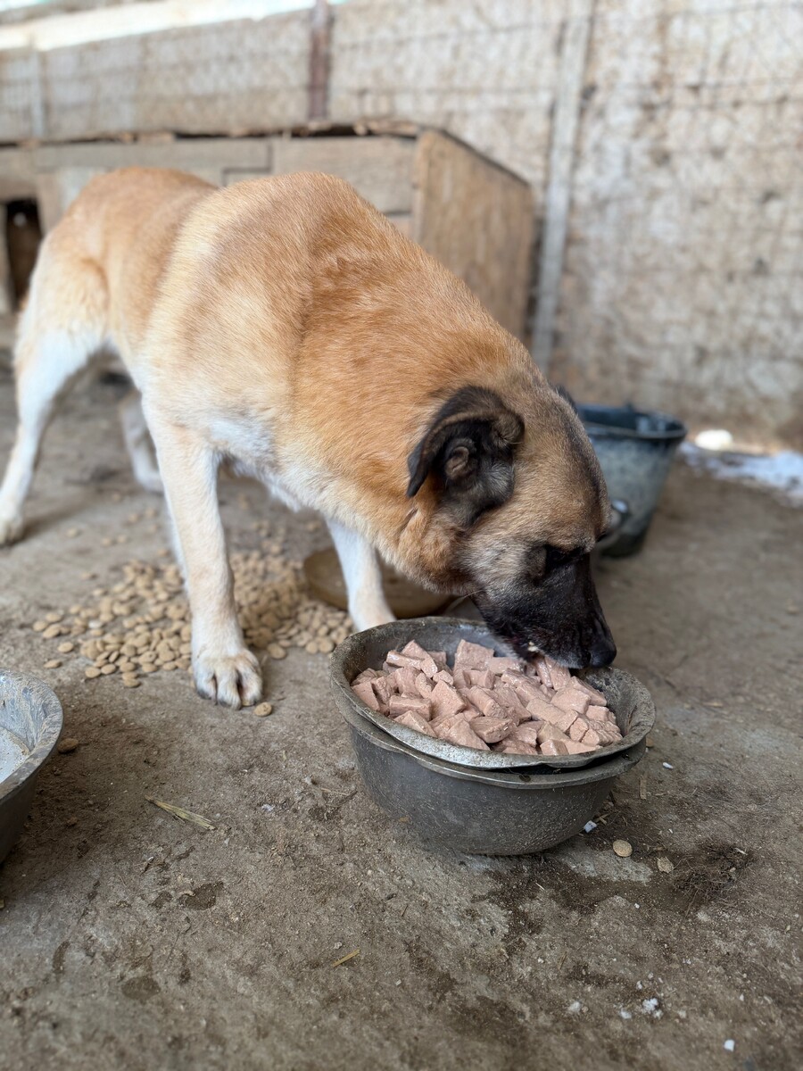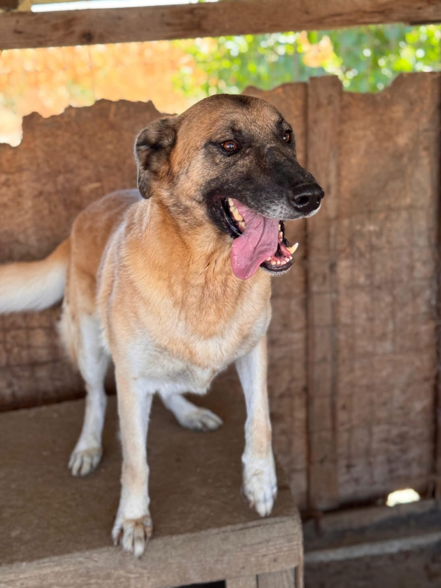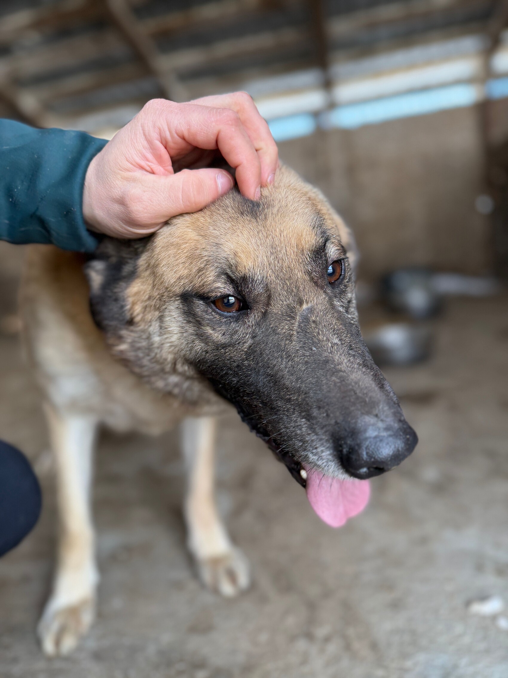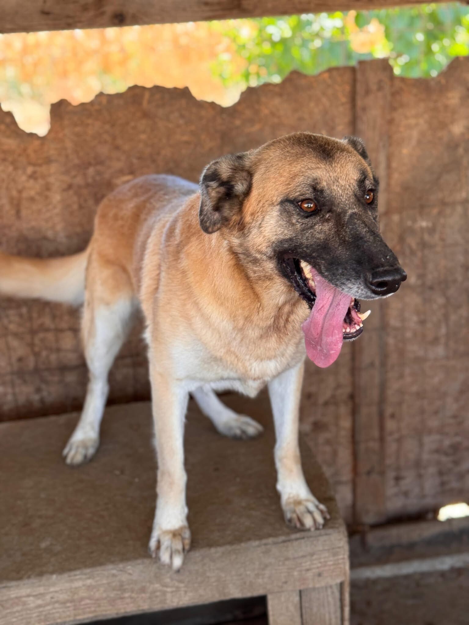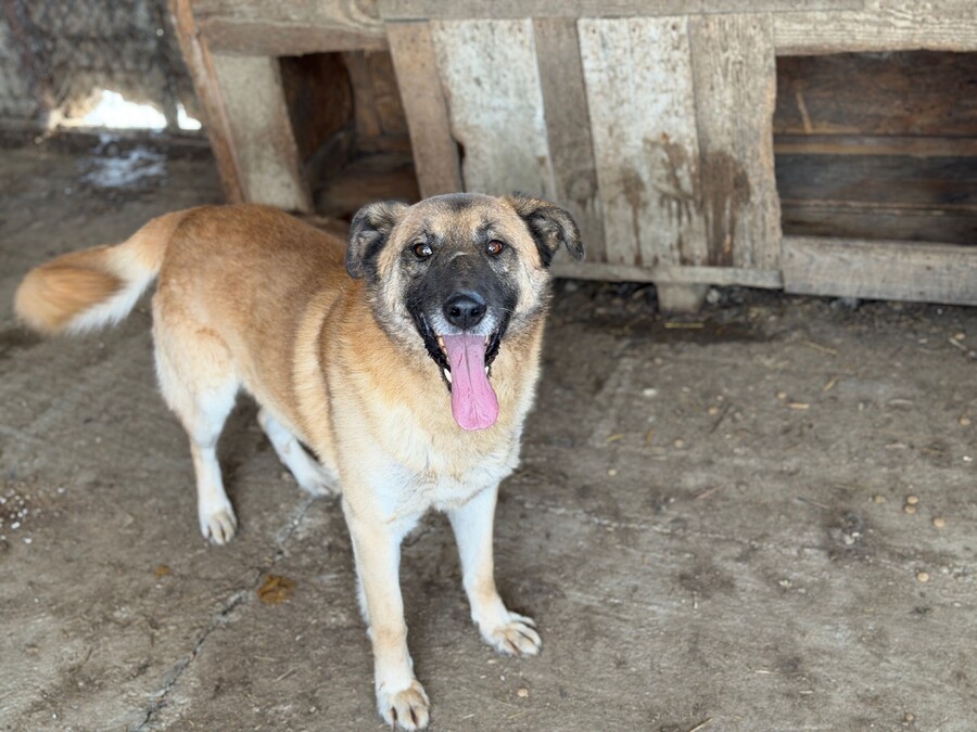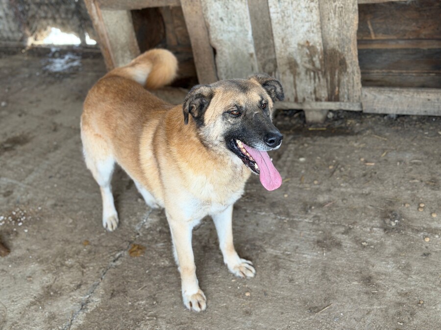 Benno, geboren 2021 und etwa 58 cm groß, kam einst ausgemergelt aus dem Public Shelter Husi nach Campurelu. Inzwischen hat er sich zu einem gesunden, kräftigen Rüden entwickelt, der mit seiner guten Laune und offenen Art jeden begeistert.