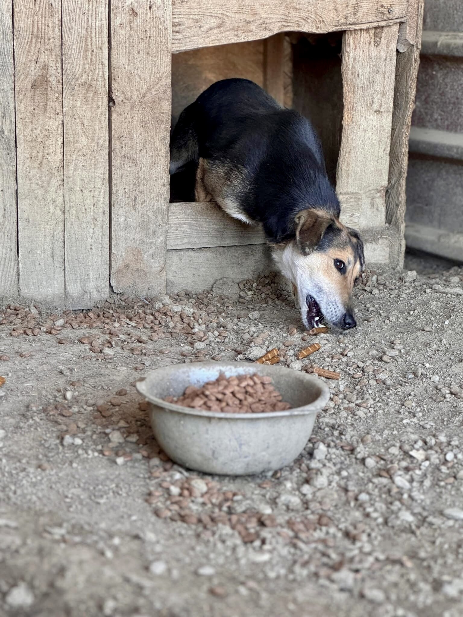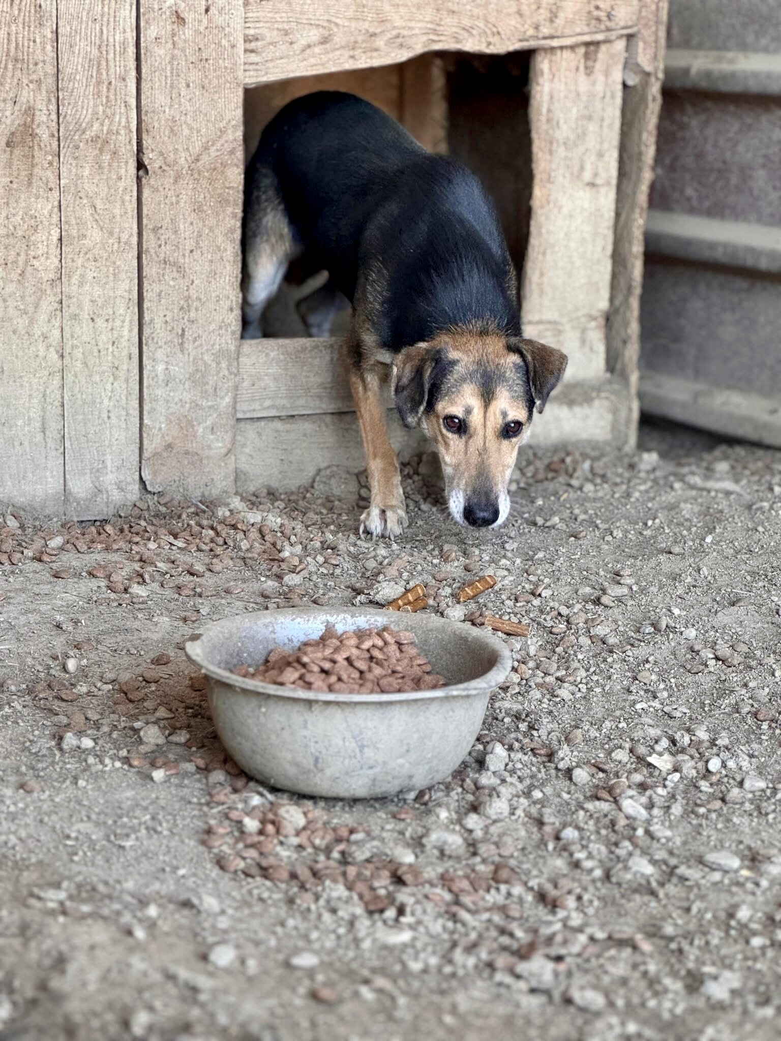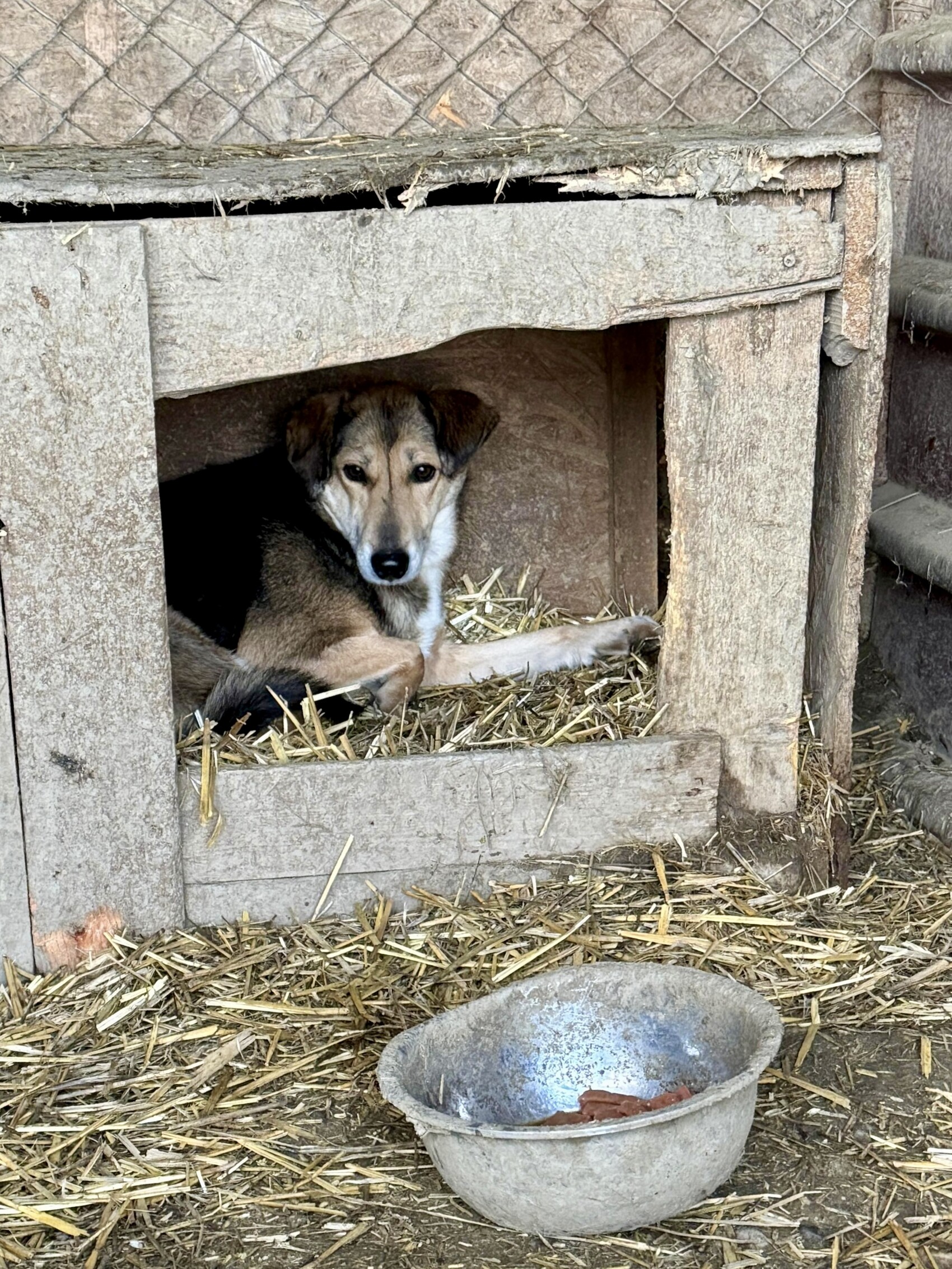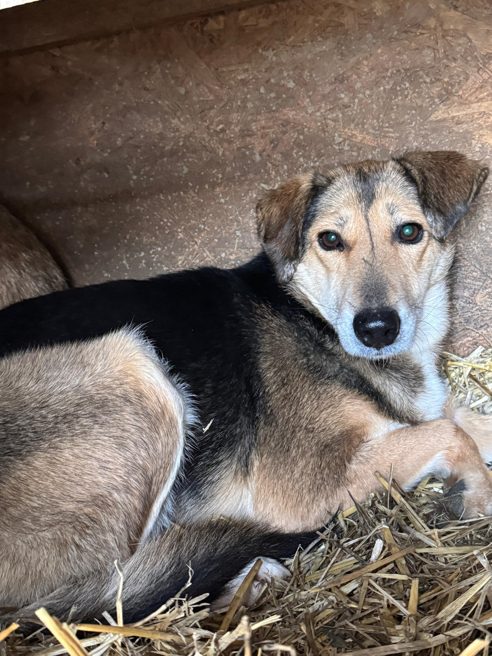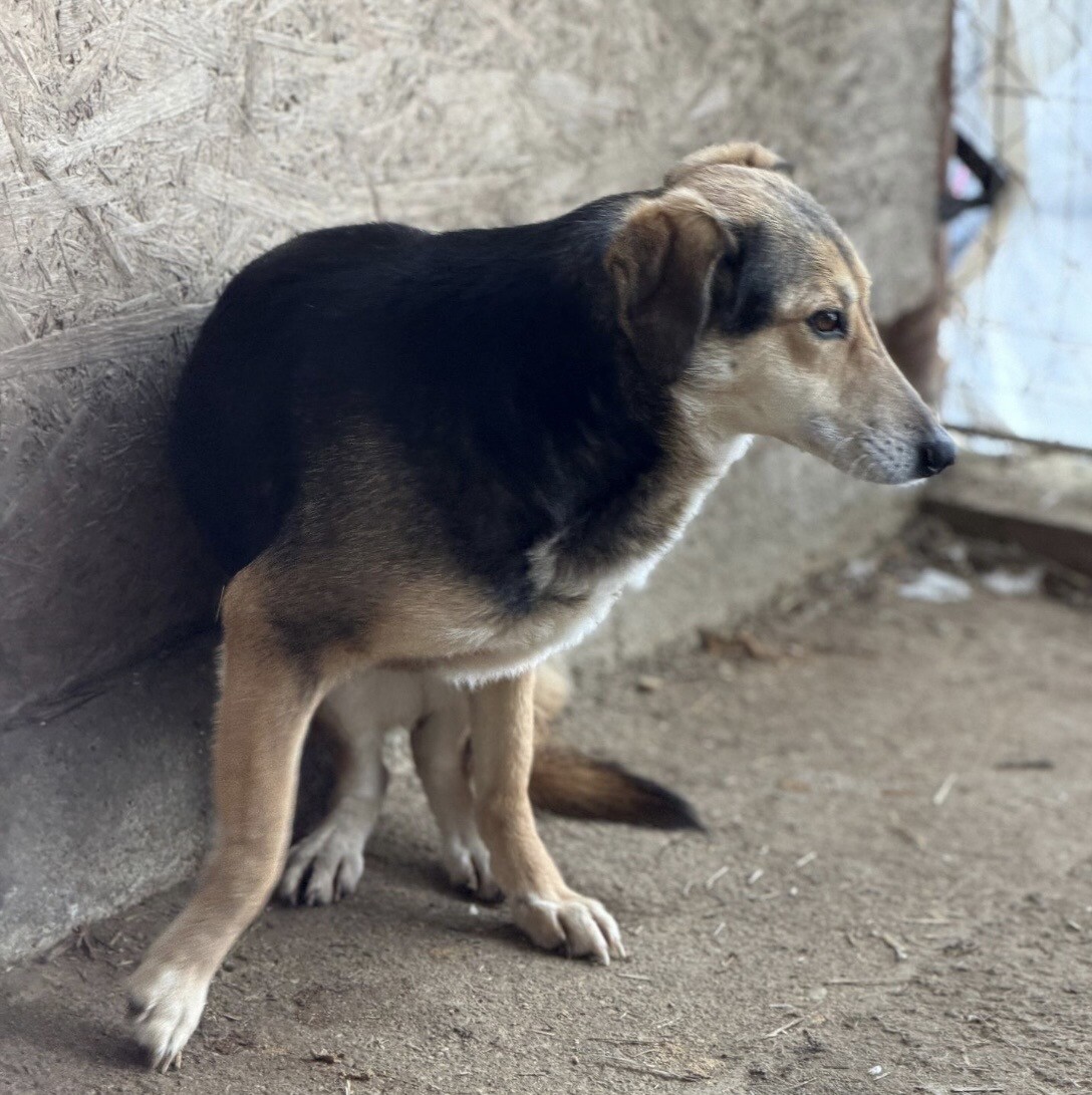 Emilie, geboren 2019 und etwa 50 cm groß, lebt im Shelter Campurelu und teilt sich den Zwinger mit Rüde Milo, der ebenso zurückhaltend ist wie sie. Sie leben harmonisch miteinander. Fremden Menschen begegnet Emilie zunächst vorsichtig. Mit Geduld und sanfter Ansprache lässt sie sich jedoch überreden, ihre schützende Hütte zu verlassen. Erst erscheint zaghaft der Kopf, dann der Hals, schließlich setzt sie Schritt für Schritt ihre Pfoten nach draußen – und steht schließlich da, aufmerksam und wunderschön.