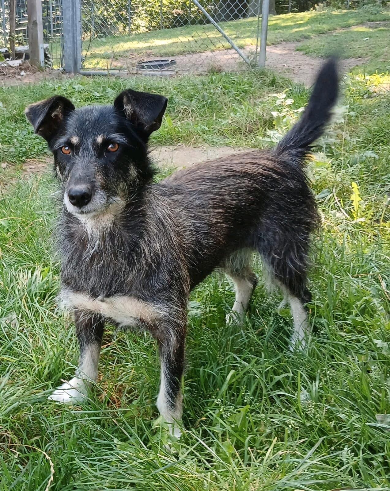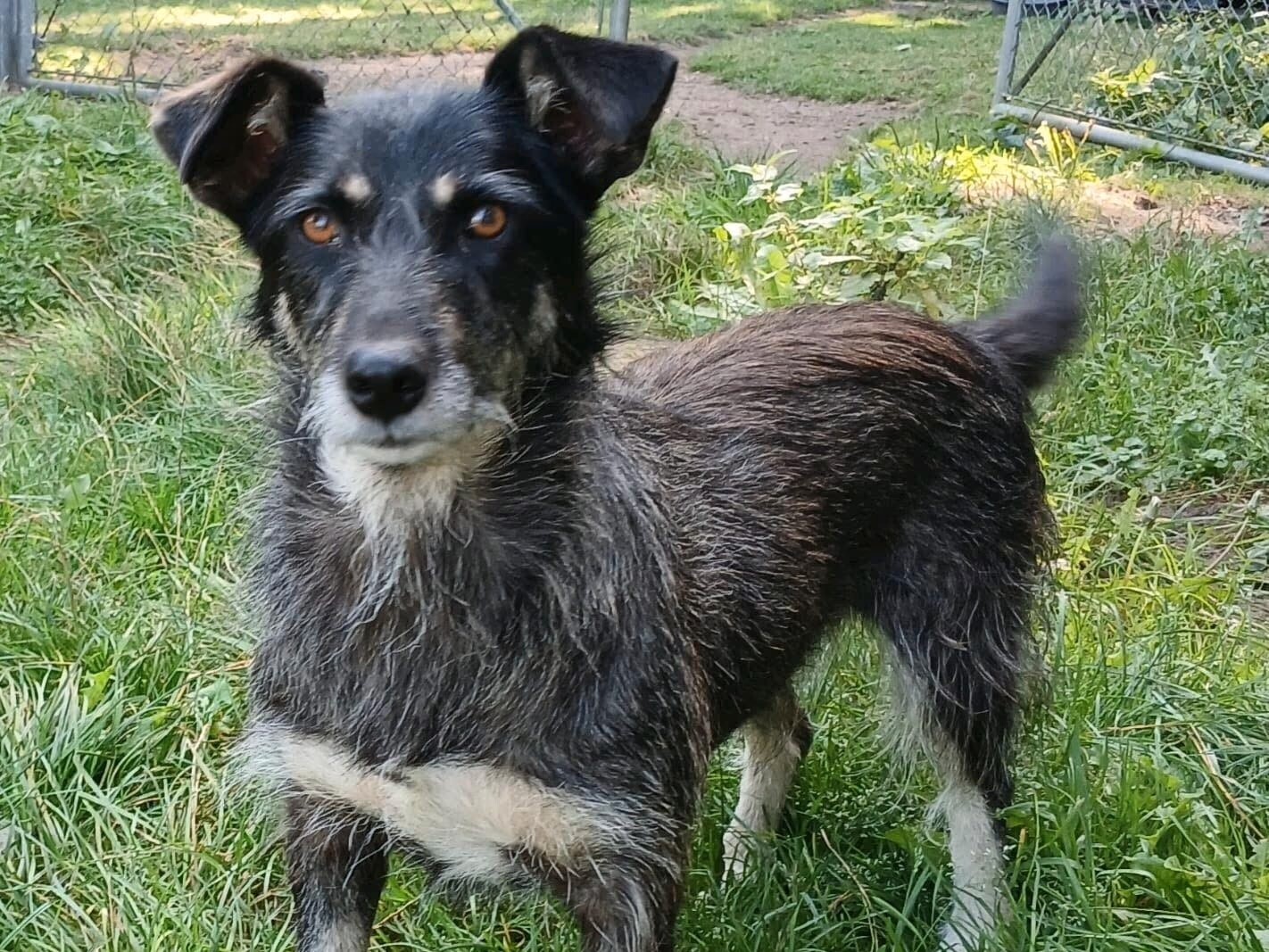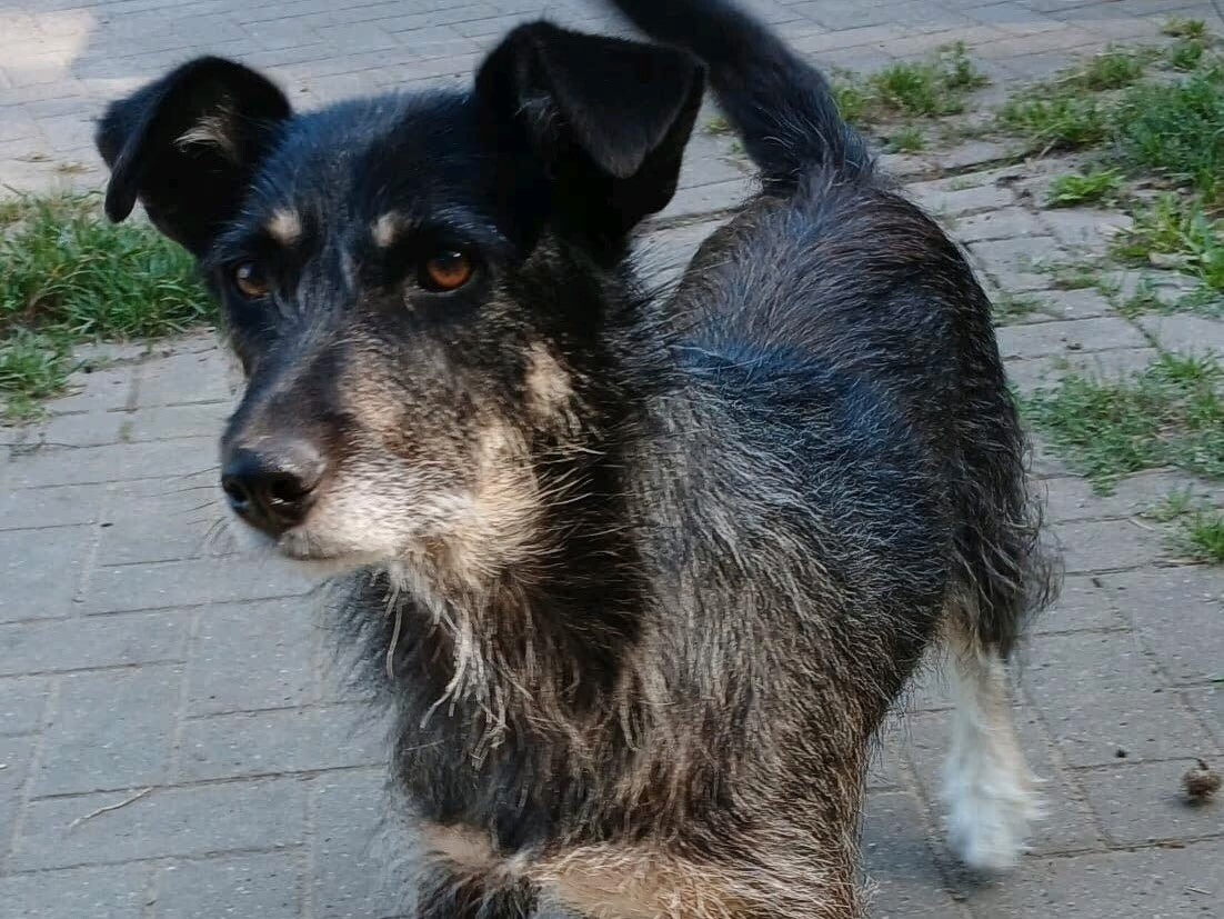 Angel (hört auf den Namen Angie) ist eine etwa 8 Jahre alte Hündin (Schätzung: 2017 geboren), ca. 40 cm groß und mit ihren kurzen Beinen eine kompakte kleine Dame. Seit fast einem Jahr lebt sie nun auf ihrer Pflegestelle und hat sich von einem zitternden Angstbündel zu einer lieben, unkomplizierten Gefährtin entwickelt.