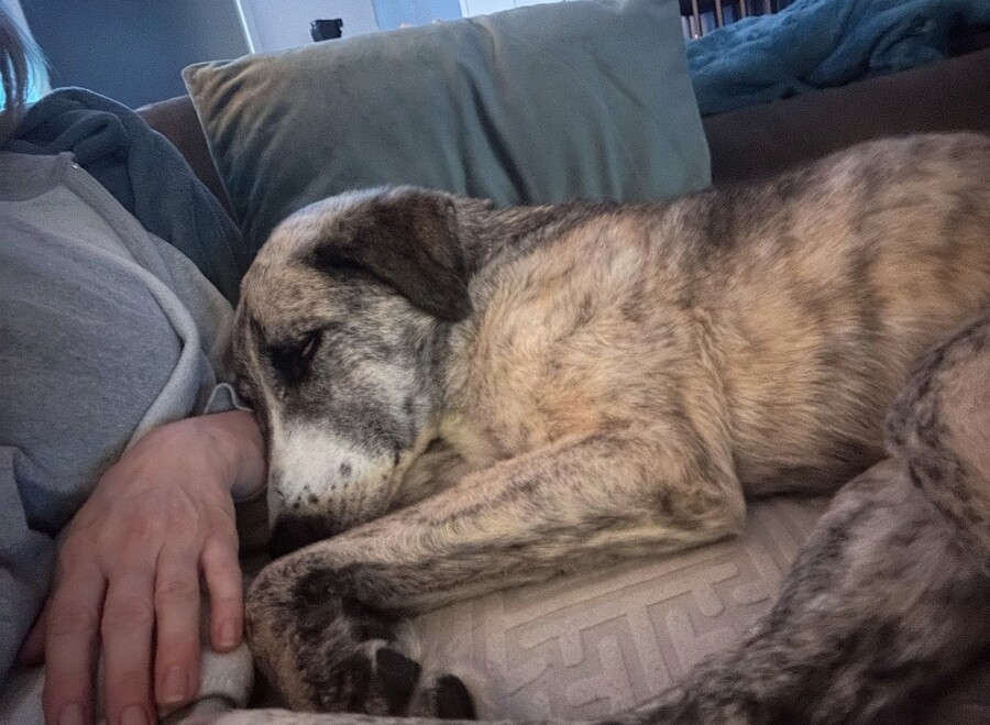 Update vom 27/04: Paulina (ehemals Mika) macht sich richtig toll. Sie kommt inzwischen ganz selbstverständlich aufs Sofa, sucht Nähe zu ihrer Pflegefamilie und freut sich riesig, wenn es zum Spaziergang geht. Draußen zeigt sie immer mehr Lebensfreude und orientiert sich sehr an dem ruhigeren Rüden der Familie, der ihr viel Sicherheit gibt.