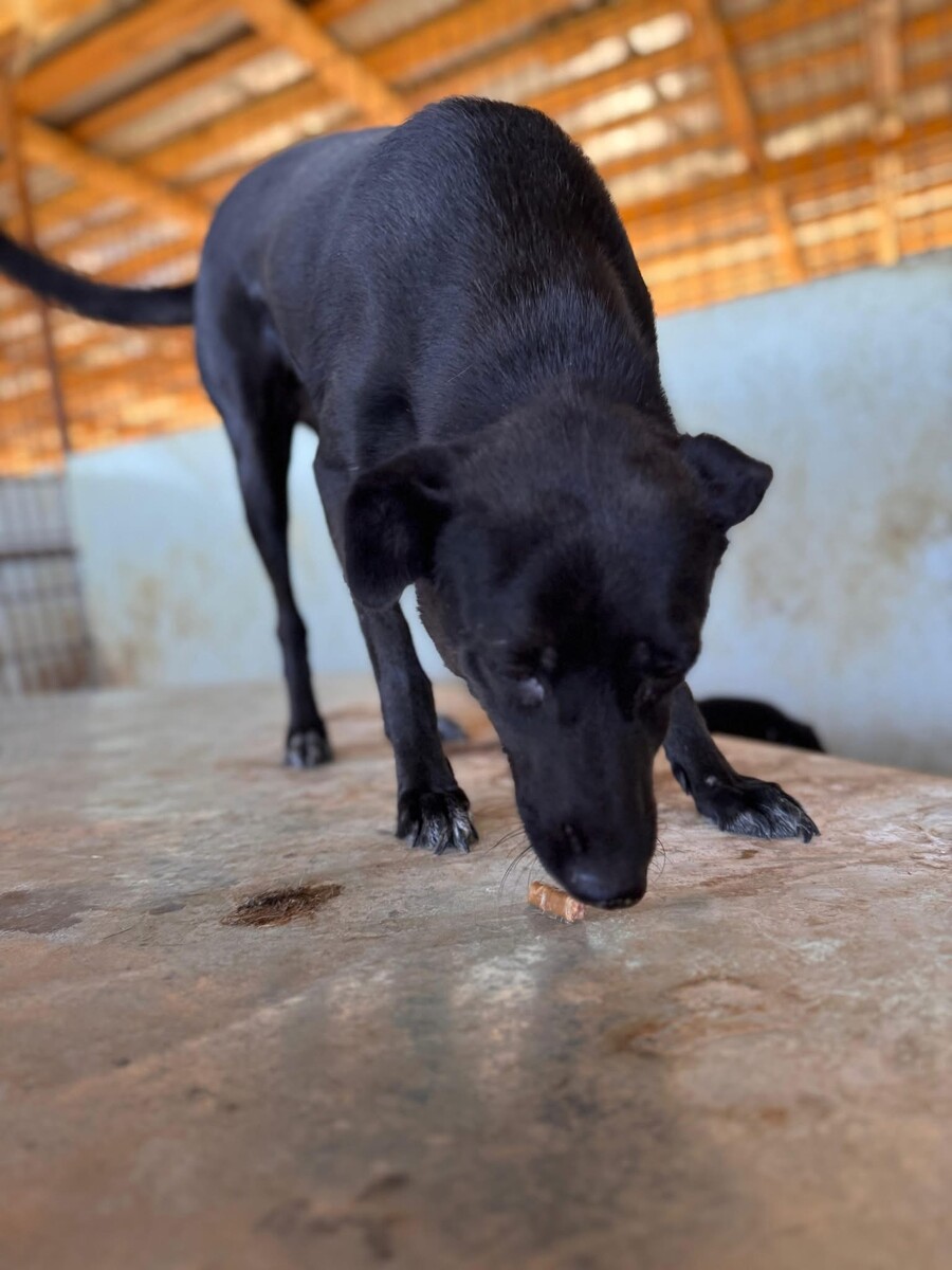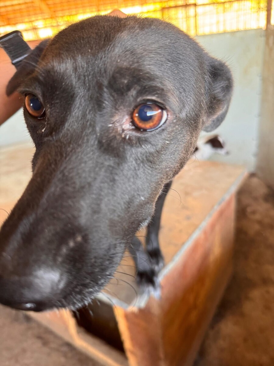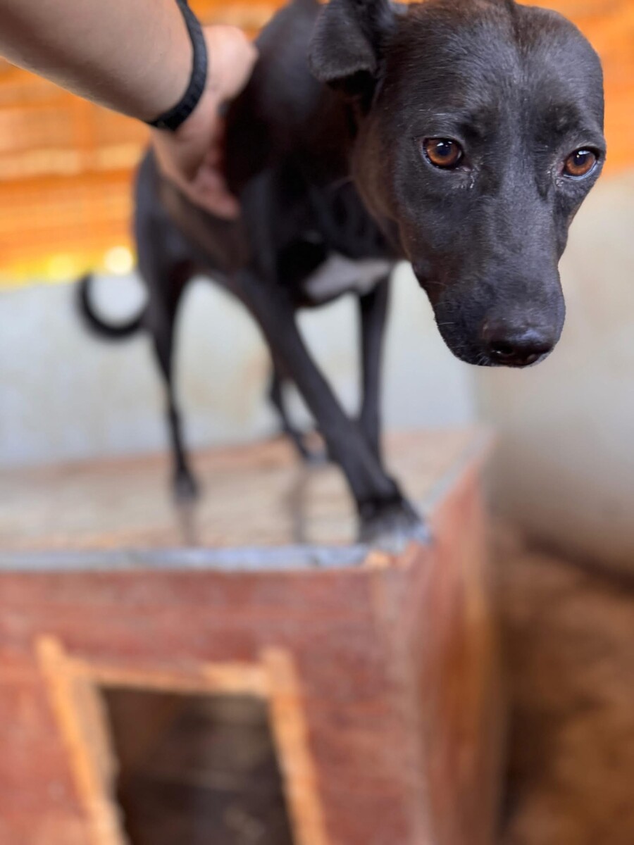 Chavah wurde 2022 geboren und ist mit etwa 50 cm Schulterhöhe eine mittelgroße, elegante Hündin. Sie stammt aus der Gegend von Targu Jiu, wo sie mitten im Winter allein im Wald gefunden wurde – in erstaunlich gutem Zustand. Offenbar hatte sie zuvor ein Zuhause, denn sie zeigte sofort Freude und Vertrauen, als sie von unserem Fahrer und Shelterleiter Alexandru entdeckt wurde.