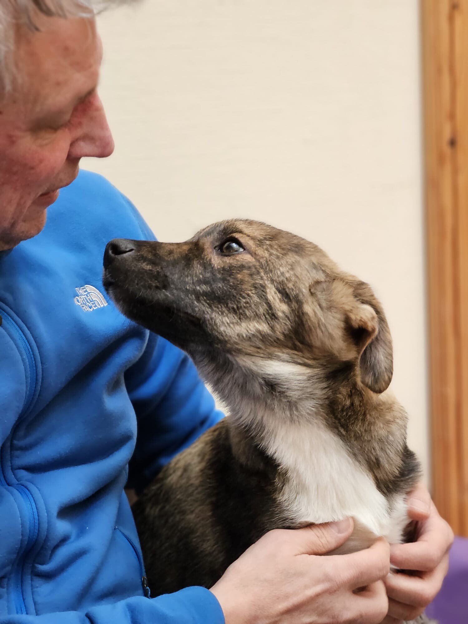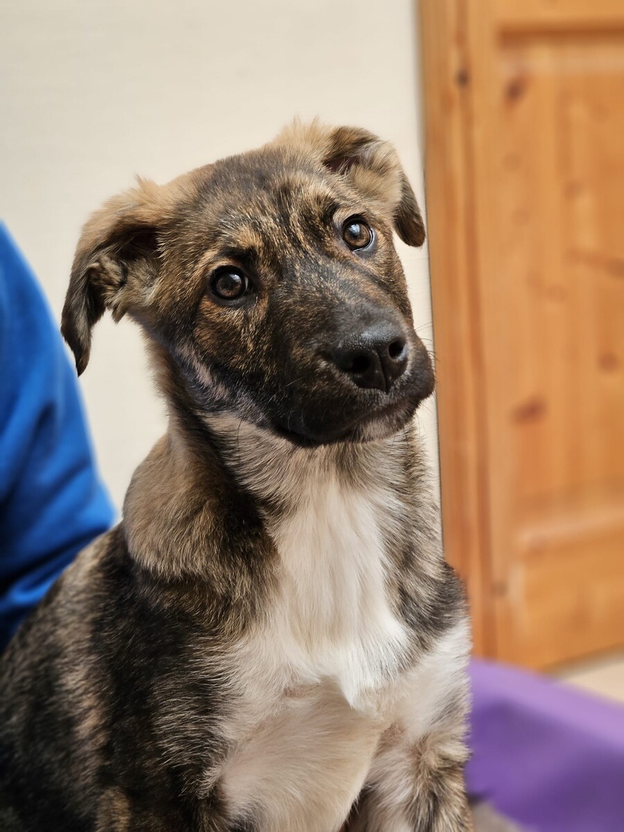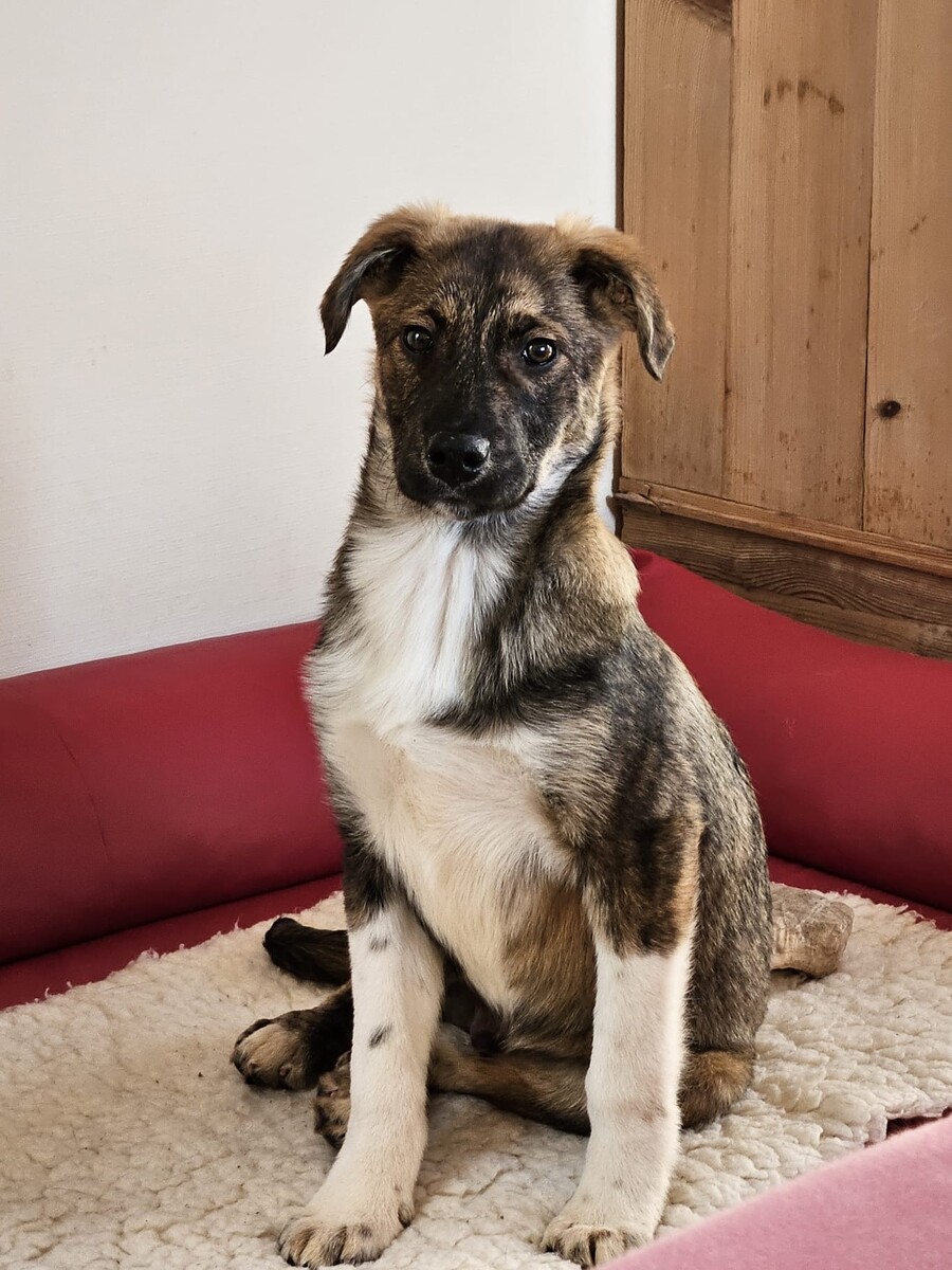Justus kam im Januar 2026 auf seiner Pflegestelle in Himbergen an. Der hübsche Rüde präsentiert sich dort mit den allerbesten Eigenschaften. Er ist freundlich, neugierig, anpassungsfähig, lernbereit und kooperativ. Den Familienhunden der Pflegestelle gegenüber verhält Justus sich vorbildlich.