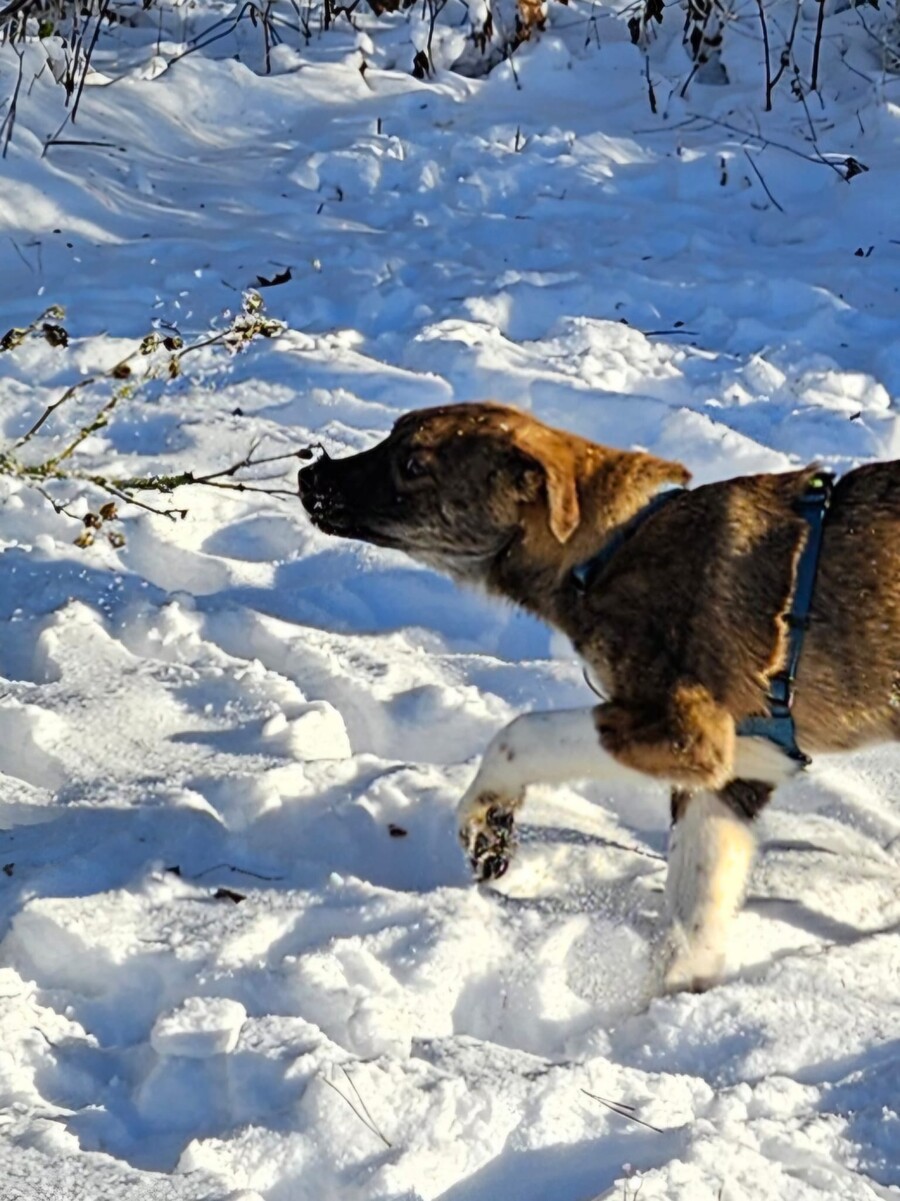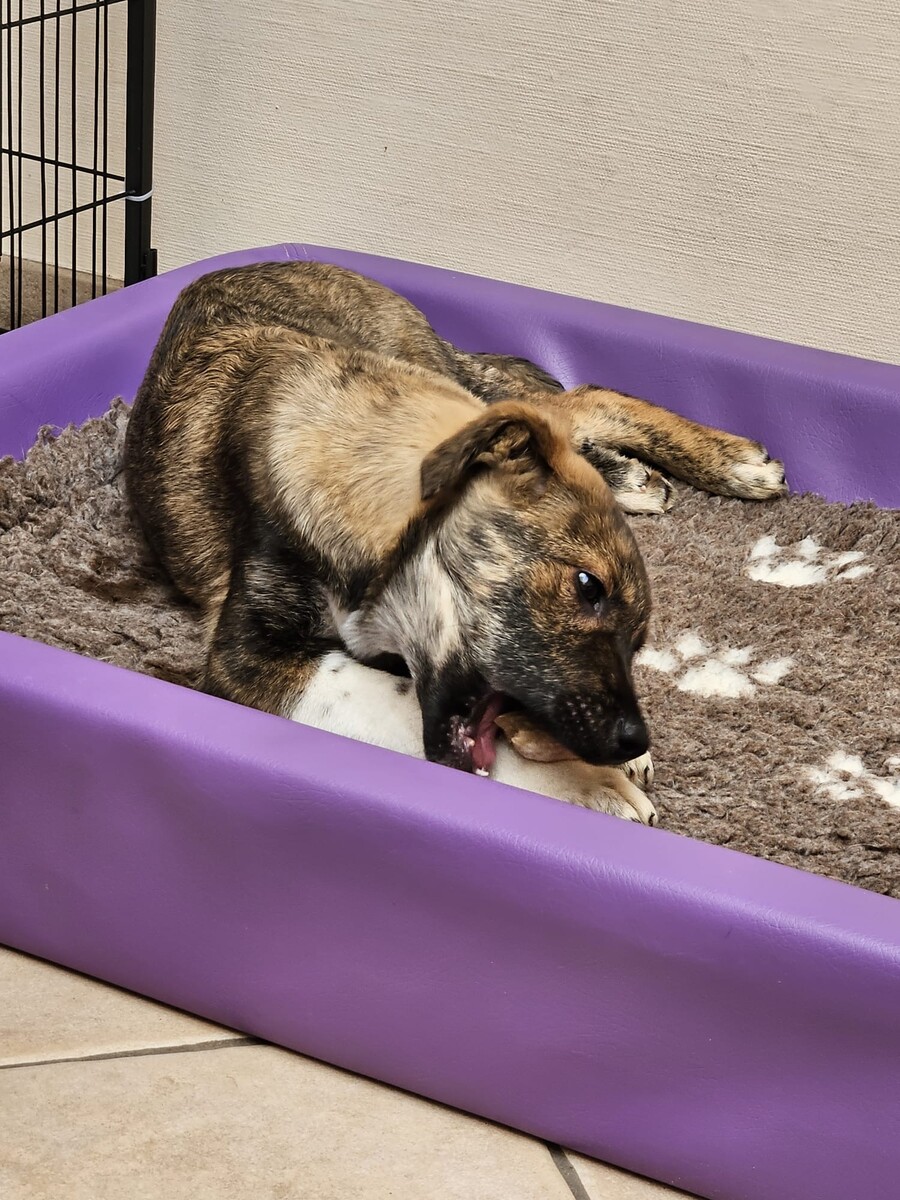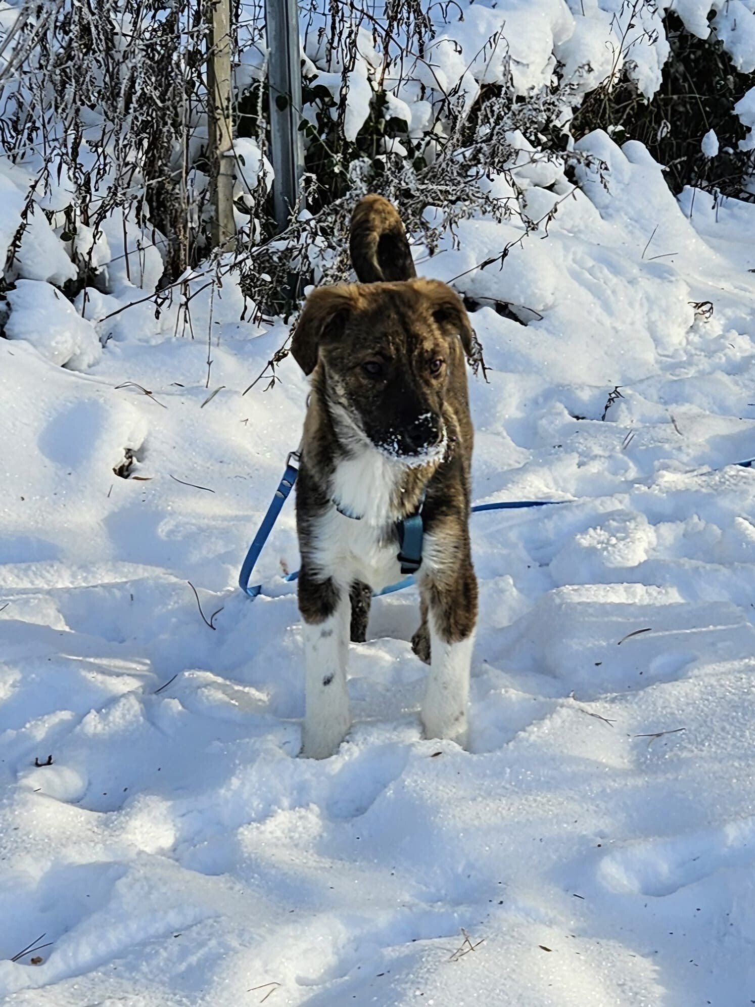 Justus kam im Januar 2026 auf seiner Pflegestelle in Himbergen an. Der hübsche Rüde präsentiert sich dort mit den allerbesten Eigenschaften. Er ist freundlich, neugierig, anpassungsfähig, lernbereit und kooperativ. Den Familienhunden der Pflegestelle gegenüber verhält Justus sich vorbildlich.