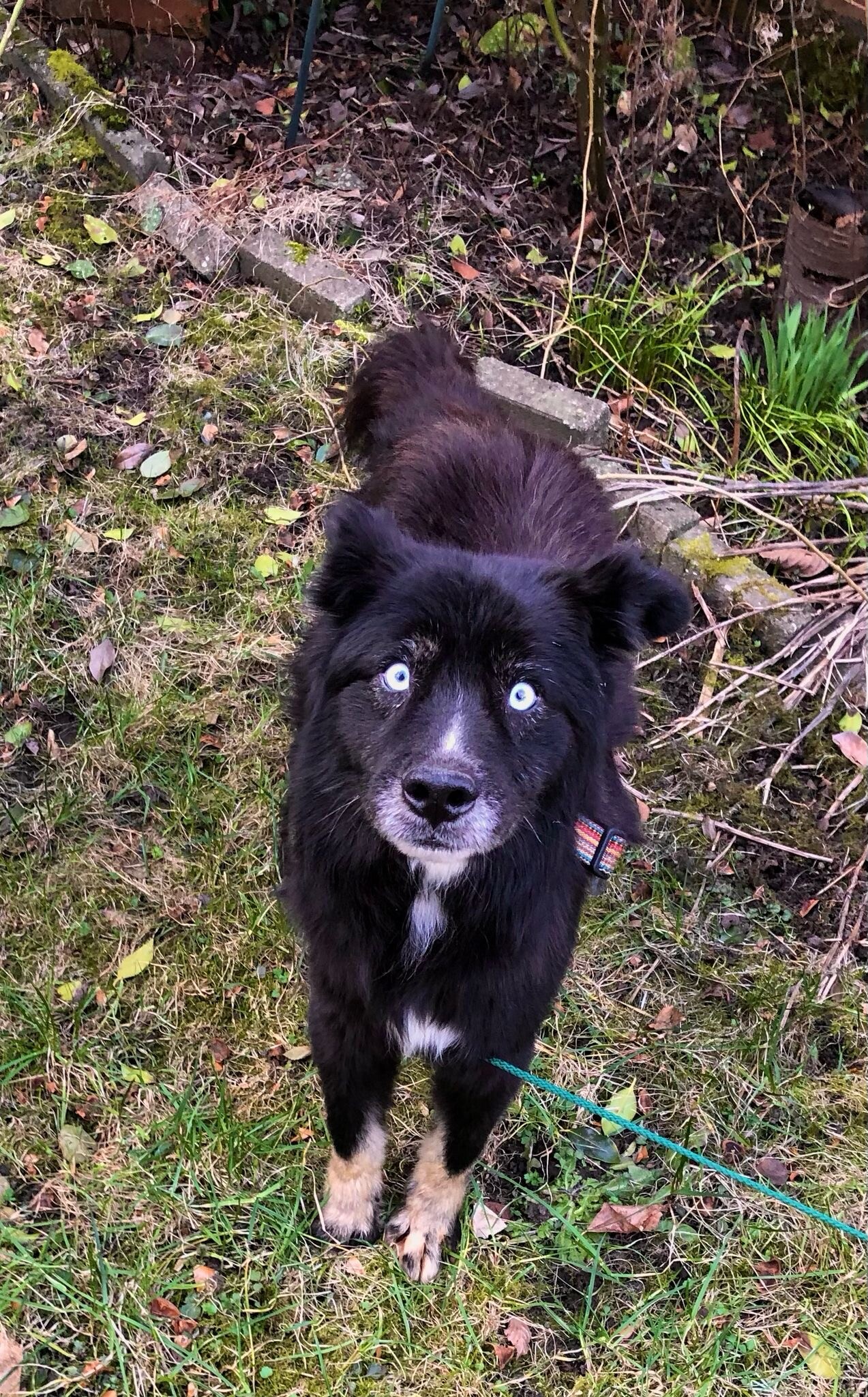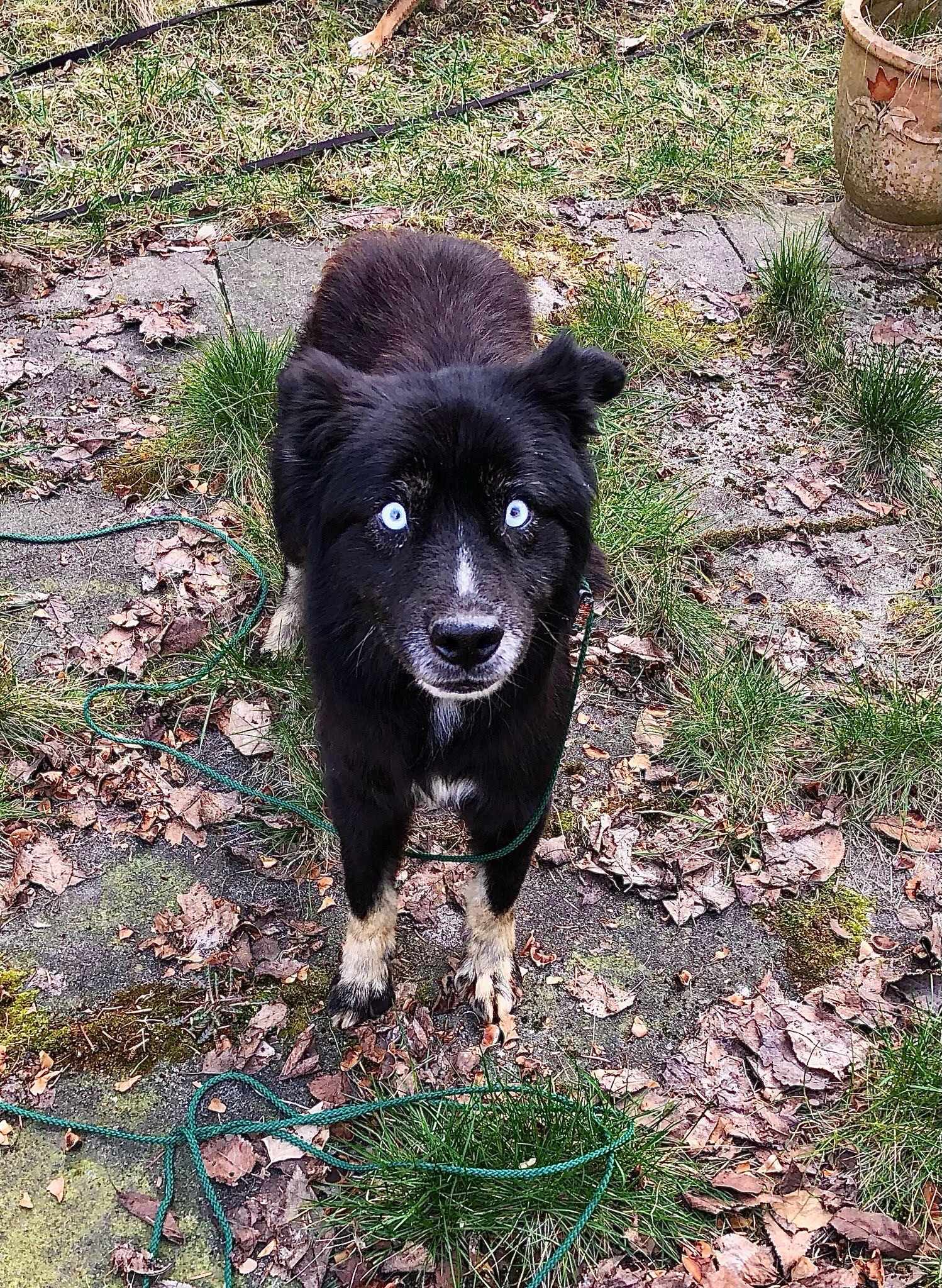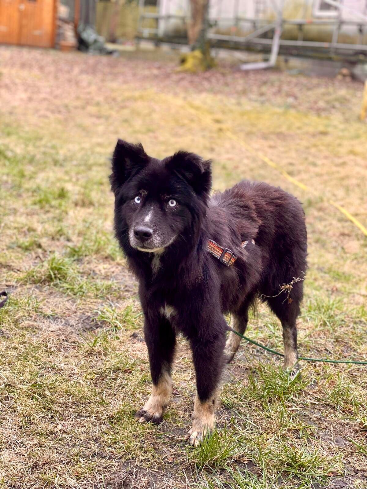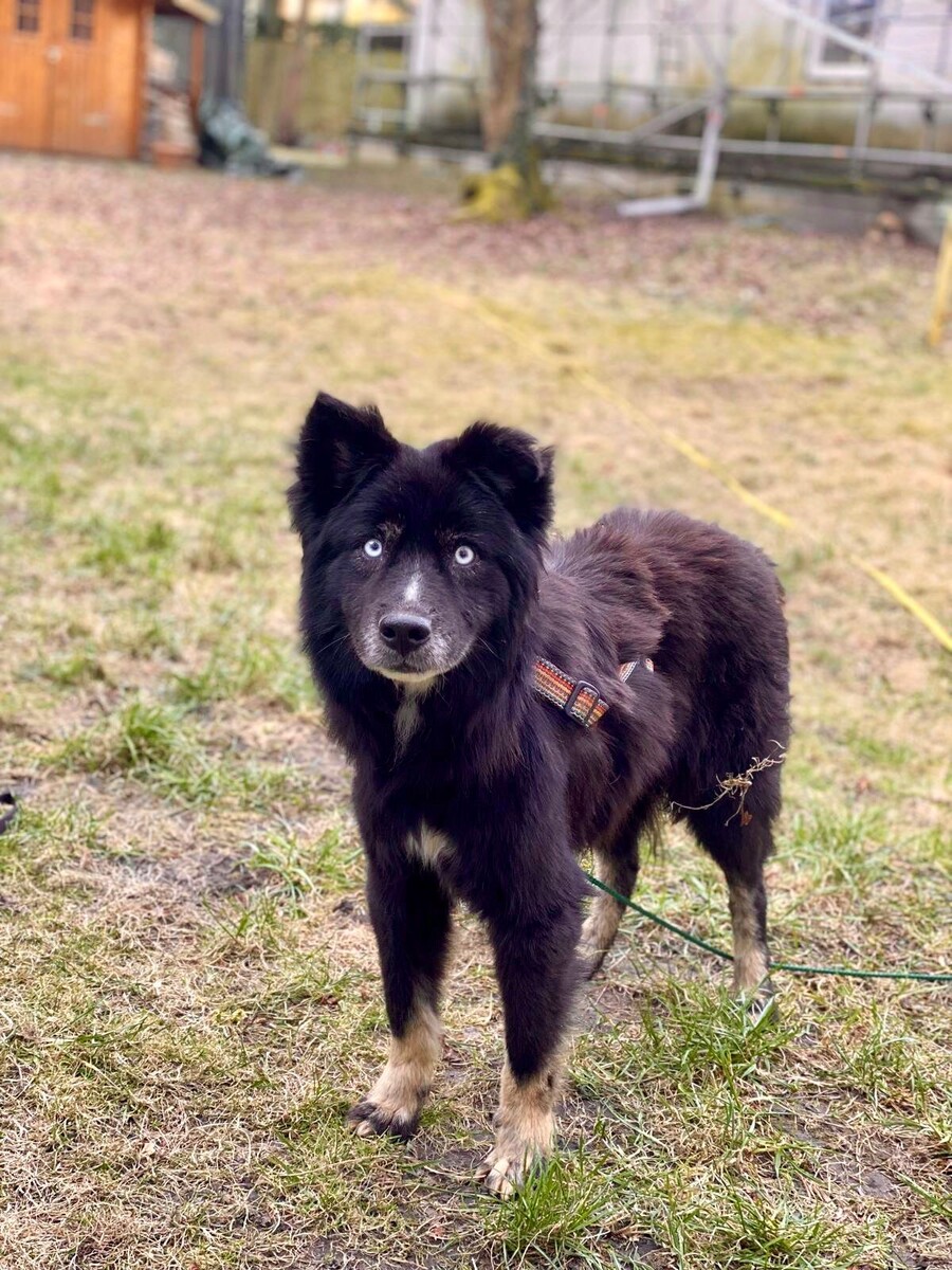 Lucas (geb. ca. 2016) ist ein etwa 45–50 cm großer Rüde, der mit seiner Erscheinung sofort ins Auge fällt. Auf seiner Pflegestelle zeigte er sich der nordische Mischlingsrüde als freundlicher, umgänglicher und zugleich eigenständiger Hund.