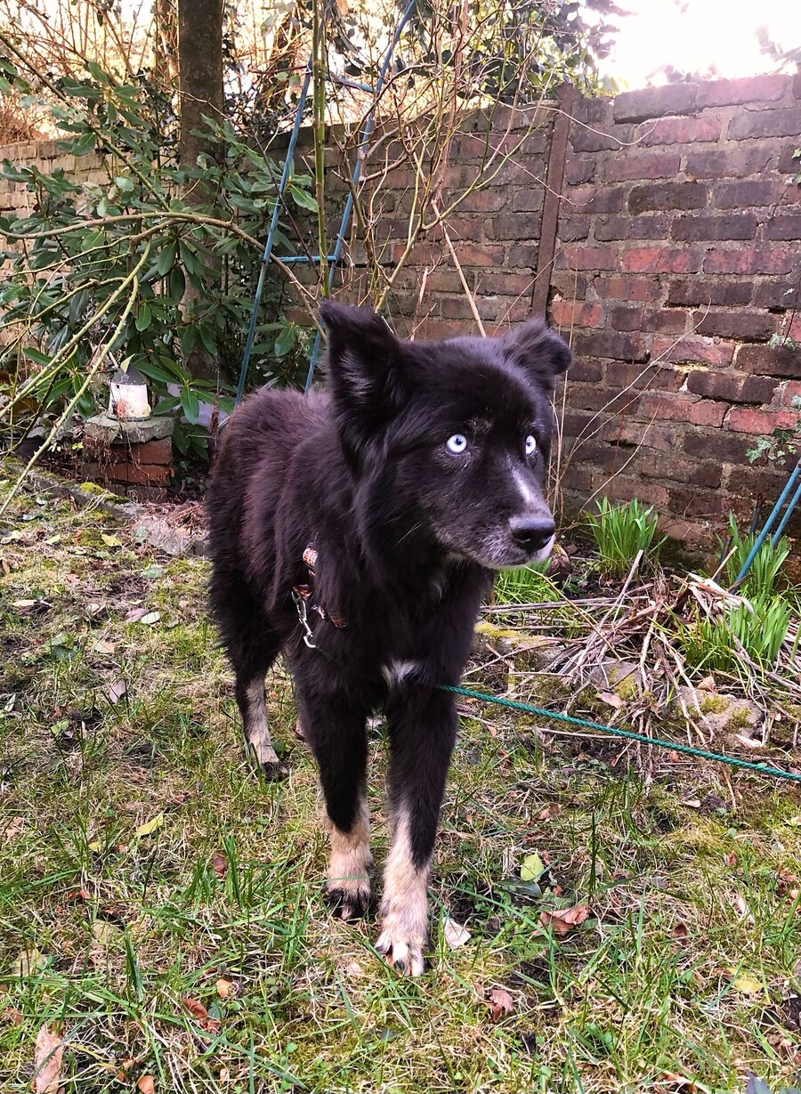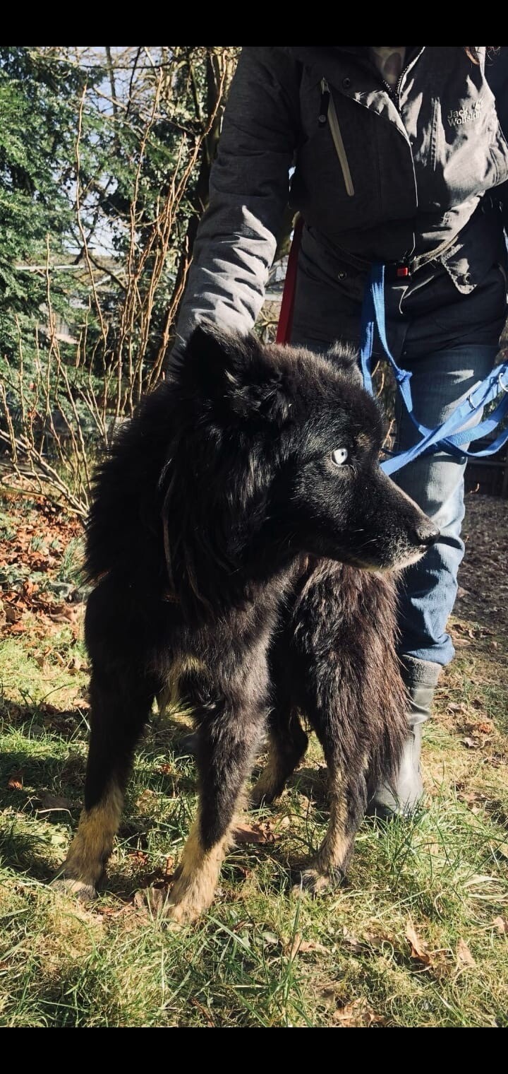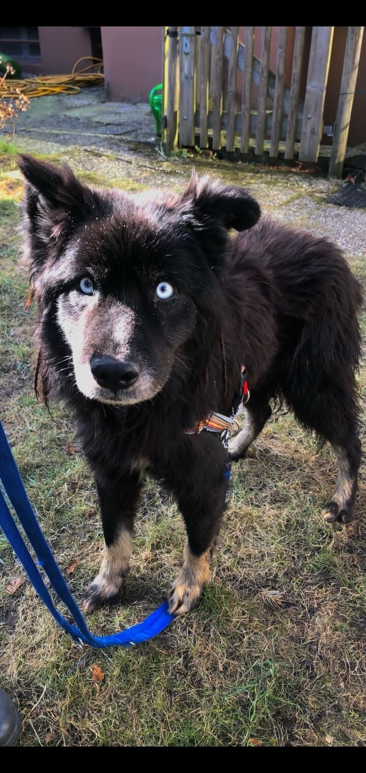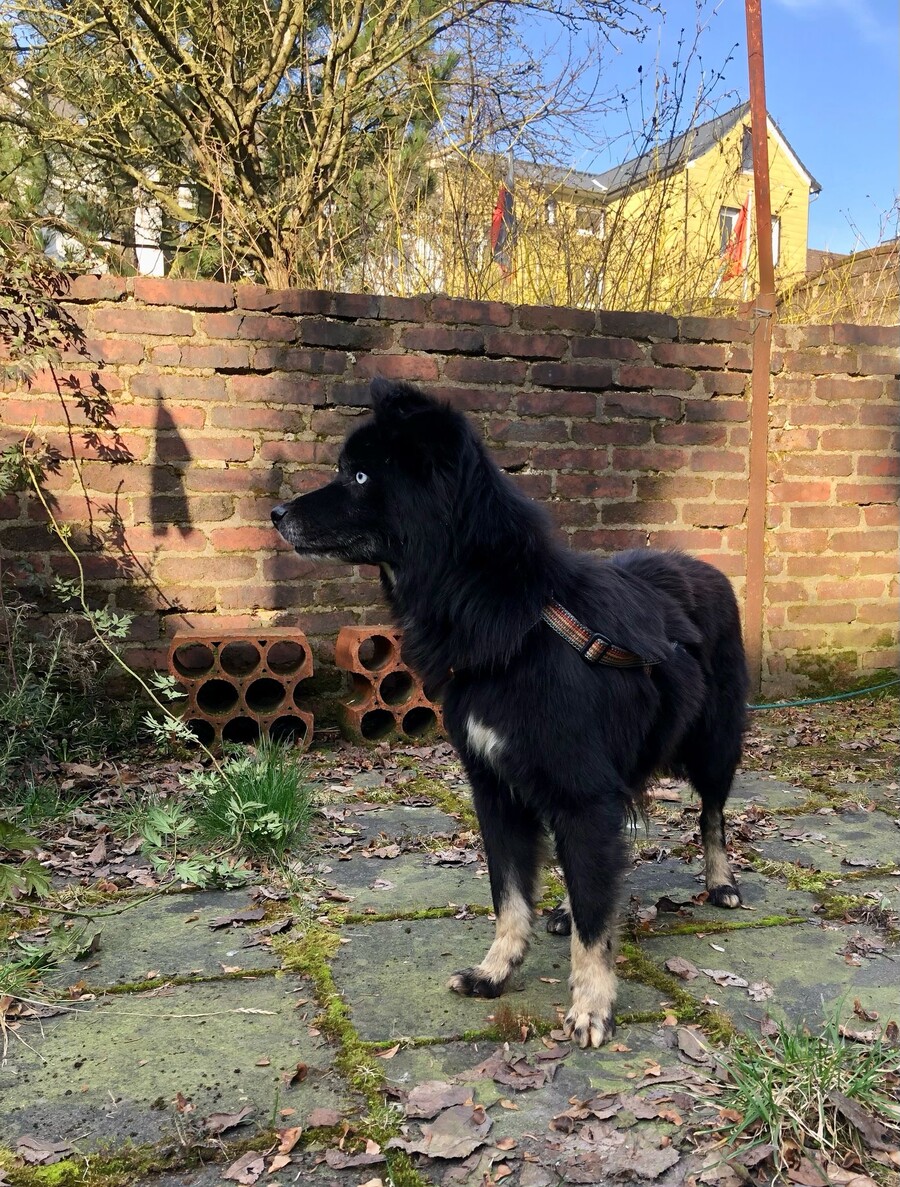 Lucas (geb. ca. 2016) ist ein etwa 45–50 cm großer Rüde, der mit seiner Erscheinung sofort ins Auge fällt. Auf seiner Pflegestelle zeigte er sich der nordische Mischlingsrüde als freundlicher, umgänglicher und zugleich eigenständiger Hund.